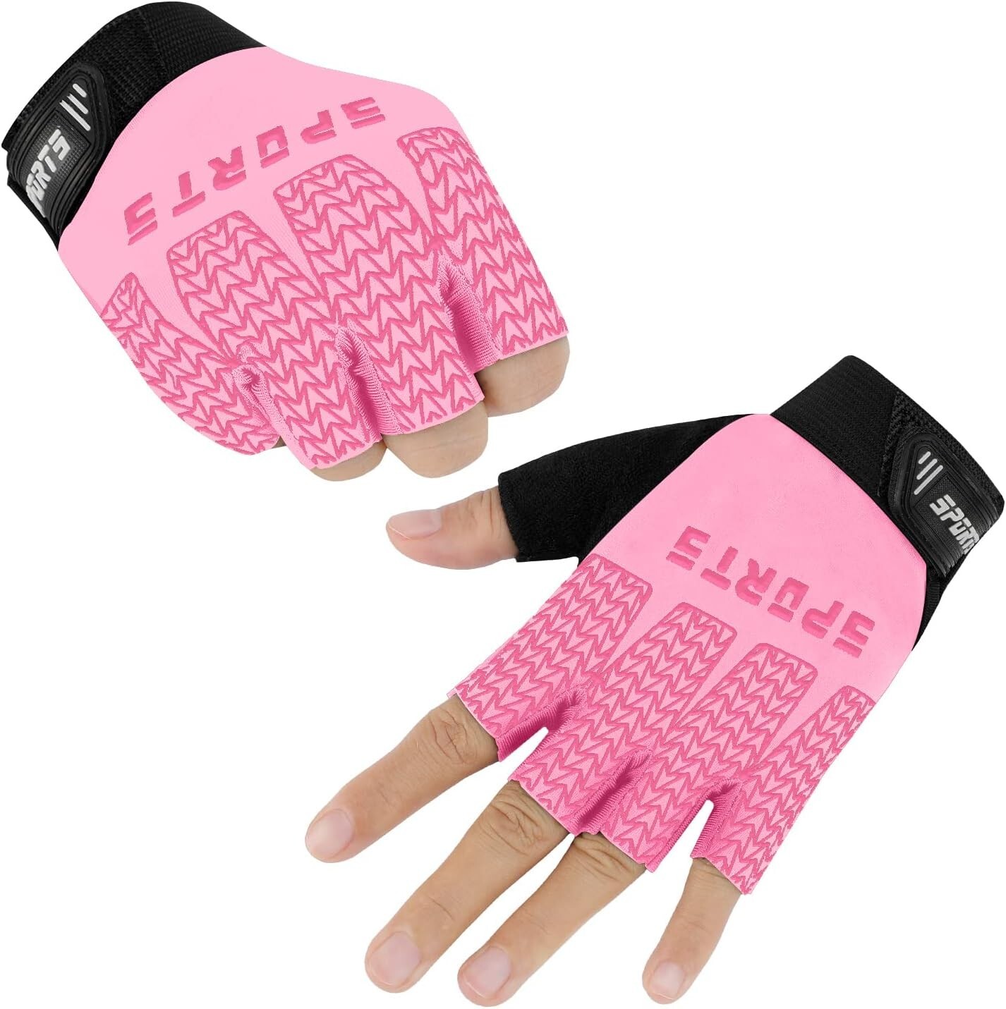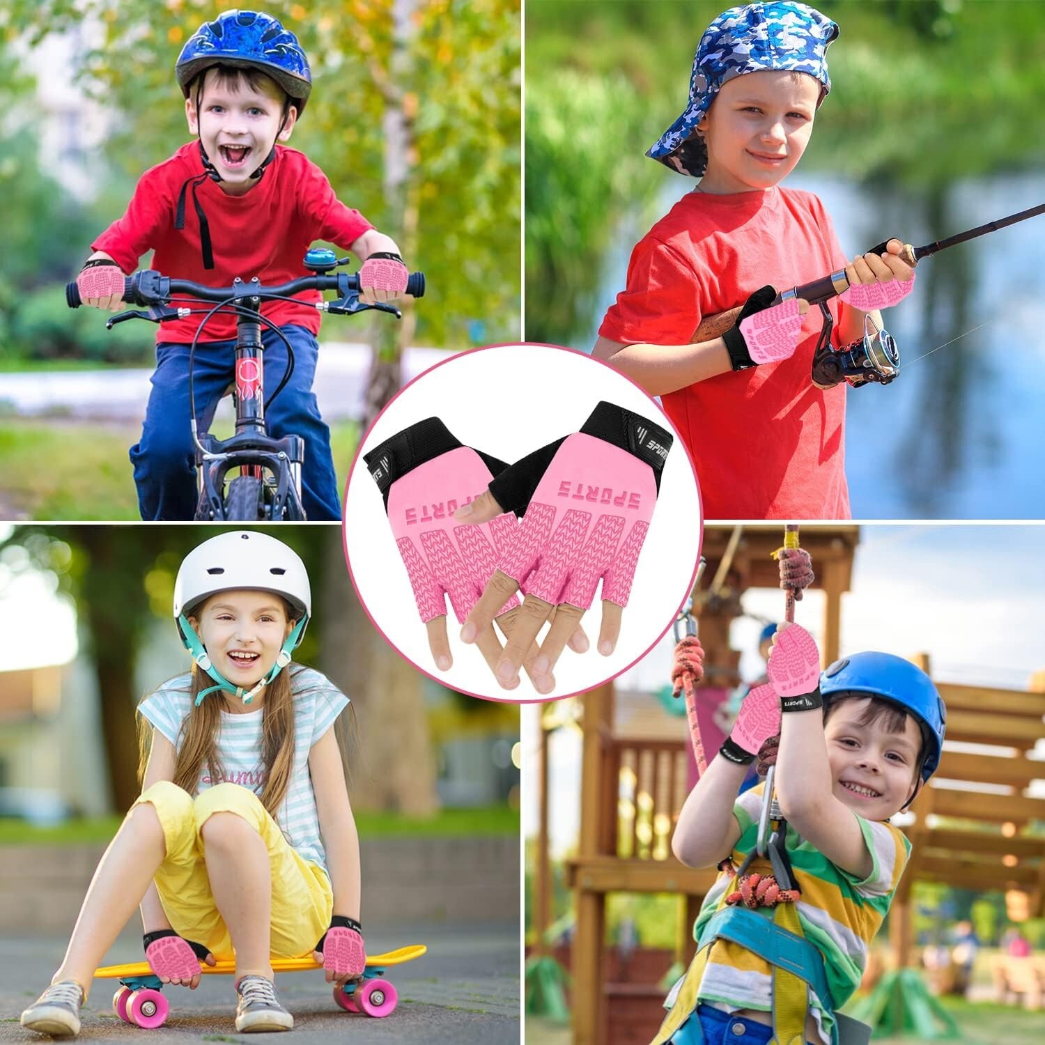 Kids Fingerless Sport Cycling Glove, Non-Slip Toddler Kids Half Small pink