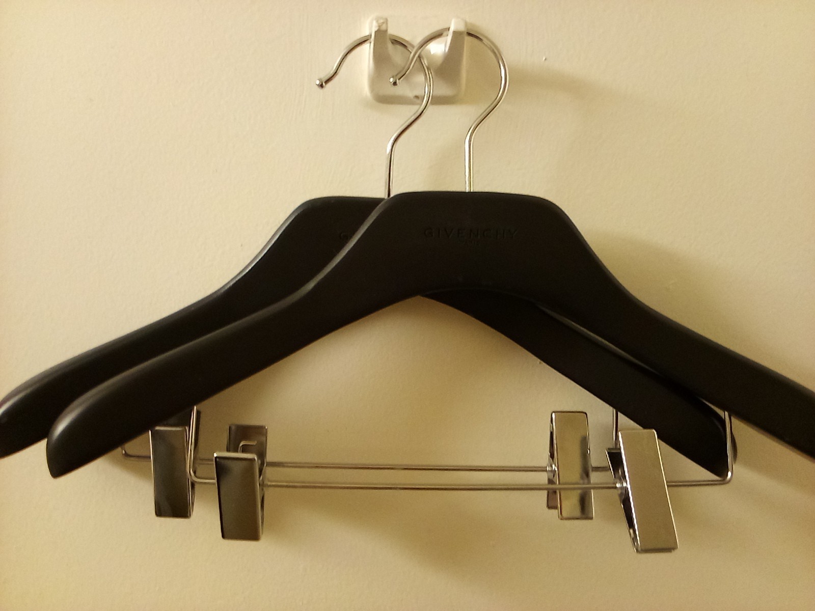 как выглядит Set Of Two Black Wood Givenchy Hangers Authentic High Quality фото