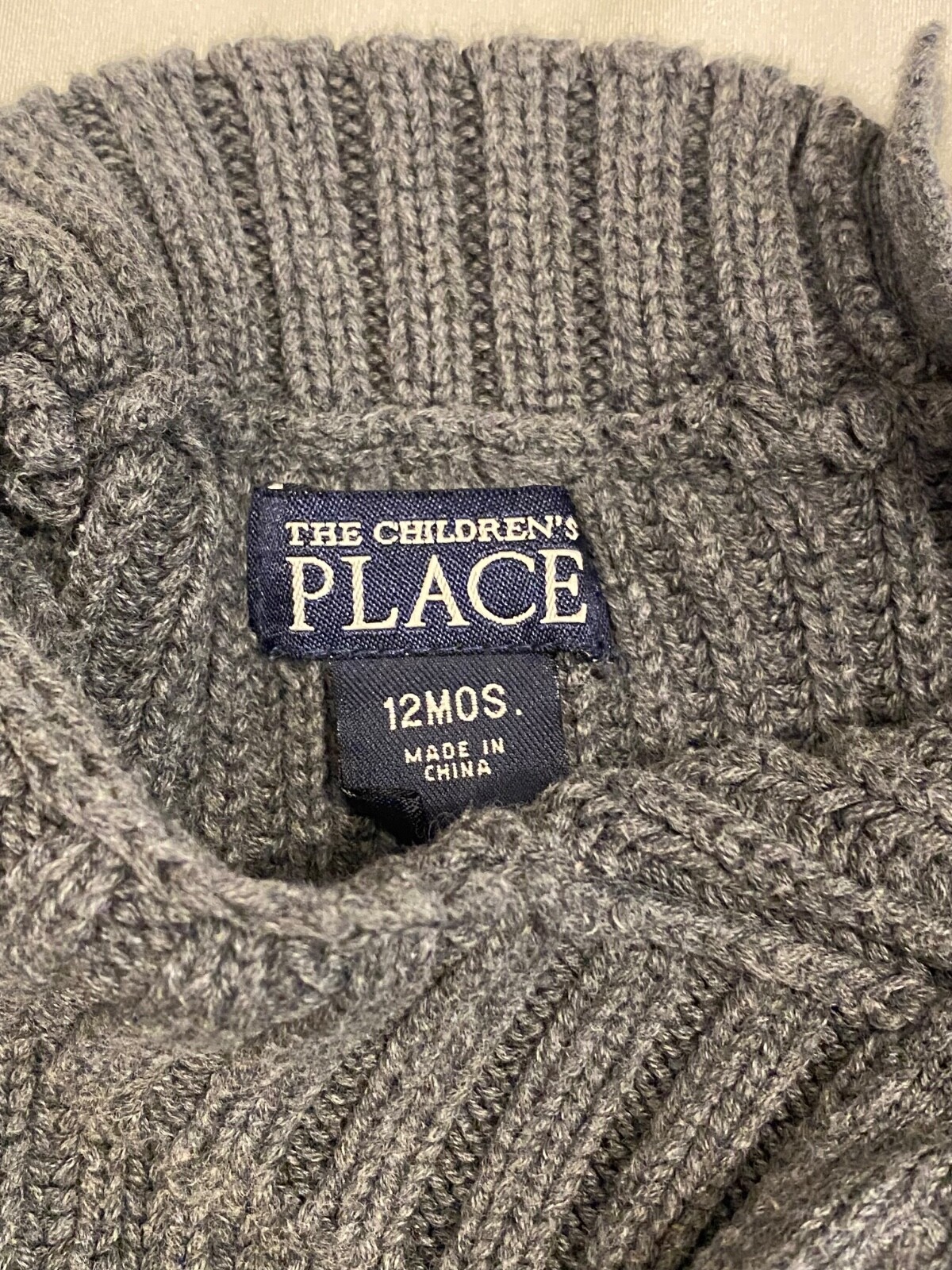 как выглядит Vtg 2004 The Children Place Baby Boy Gray SWEATER PULLOVER-12mo-Cotton-Buttons фото