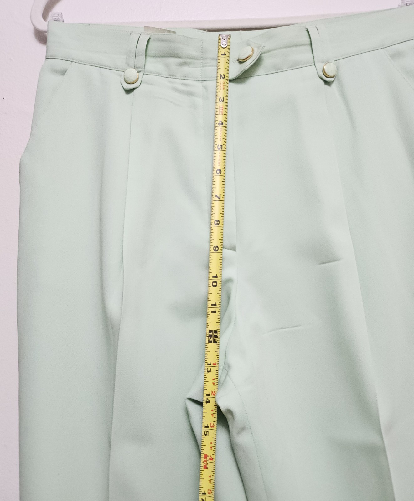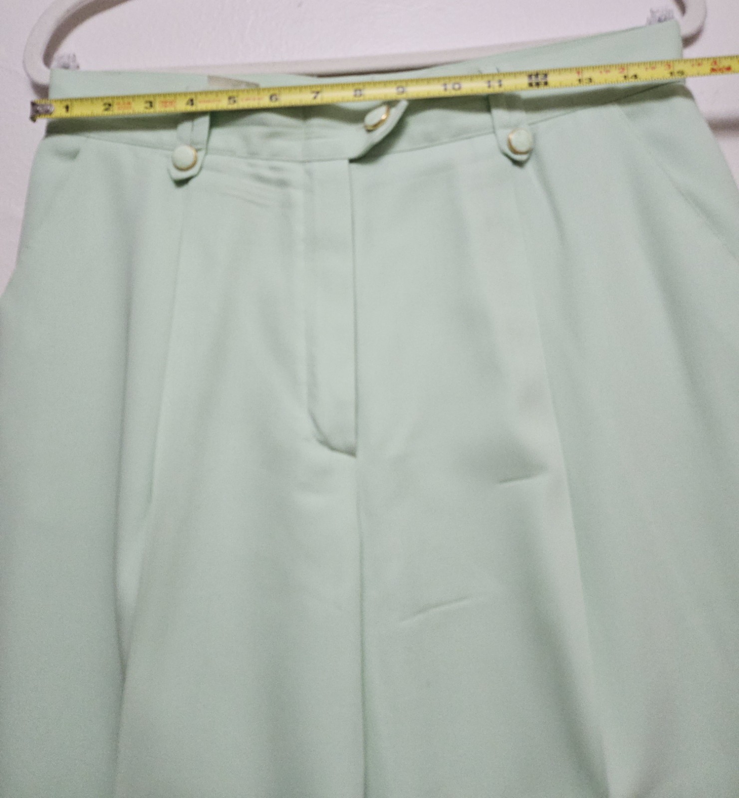 Escada Margaretha Ley Mint Classic Wool Pants Pockets Sz 42 w/defects
