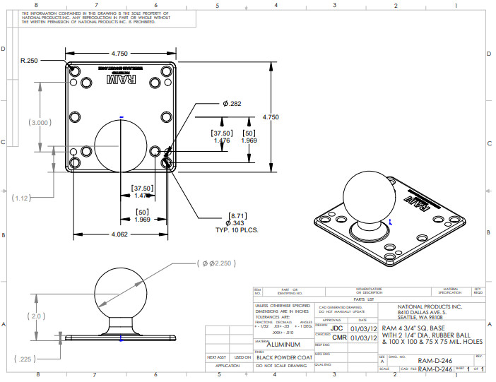 RAM Mount Steel Reinforced 100x100mm VESA Plate with Ball - D Size UPC: 79344290
