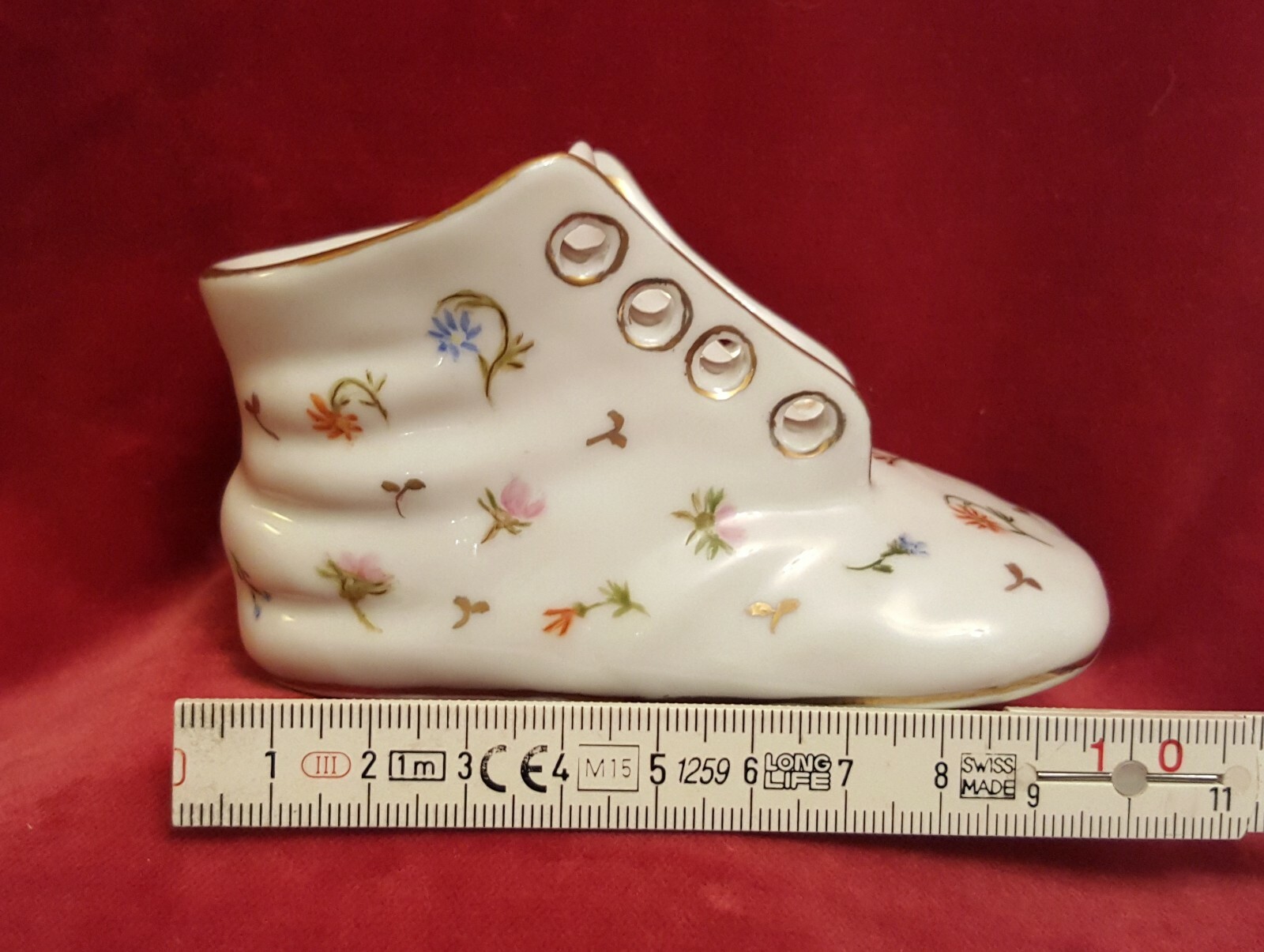 Vintage Hand Painted Floral Design Porcelain Baby Shoe