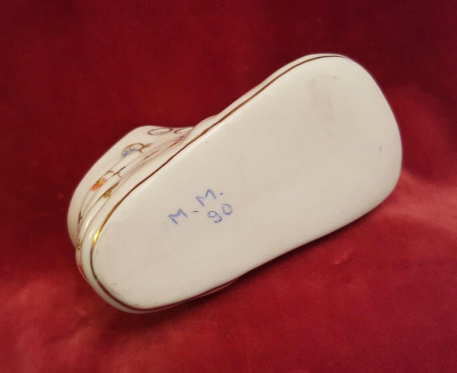 • Vintage Hand Painted Floral Design Porcelain Baby Shoe