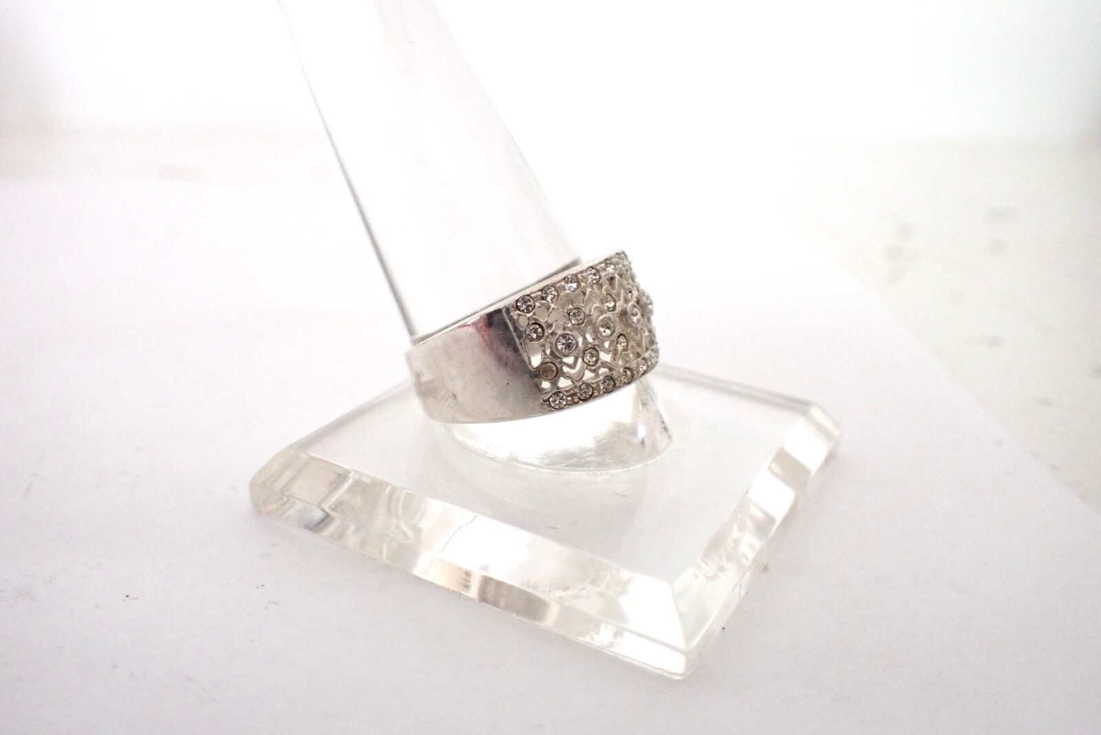 Vintage Sterling Silver Deco Style Filigree Wide Band Ring W/ CZ Size 8.5