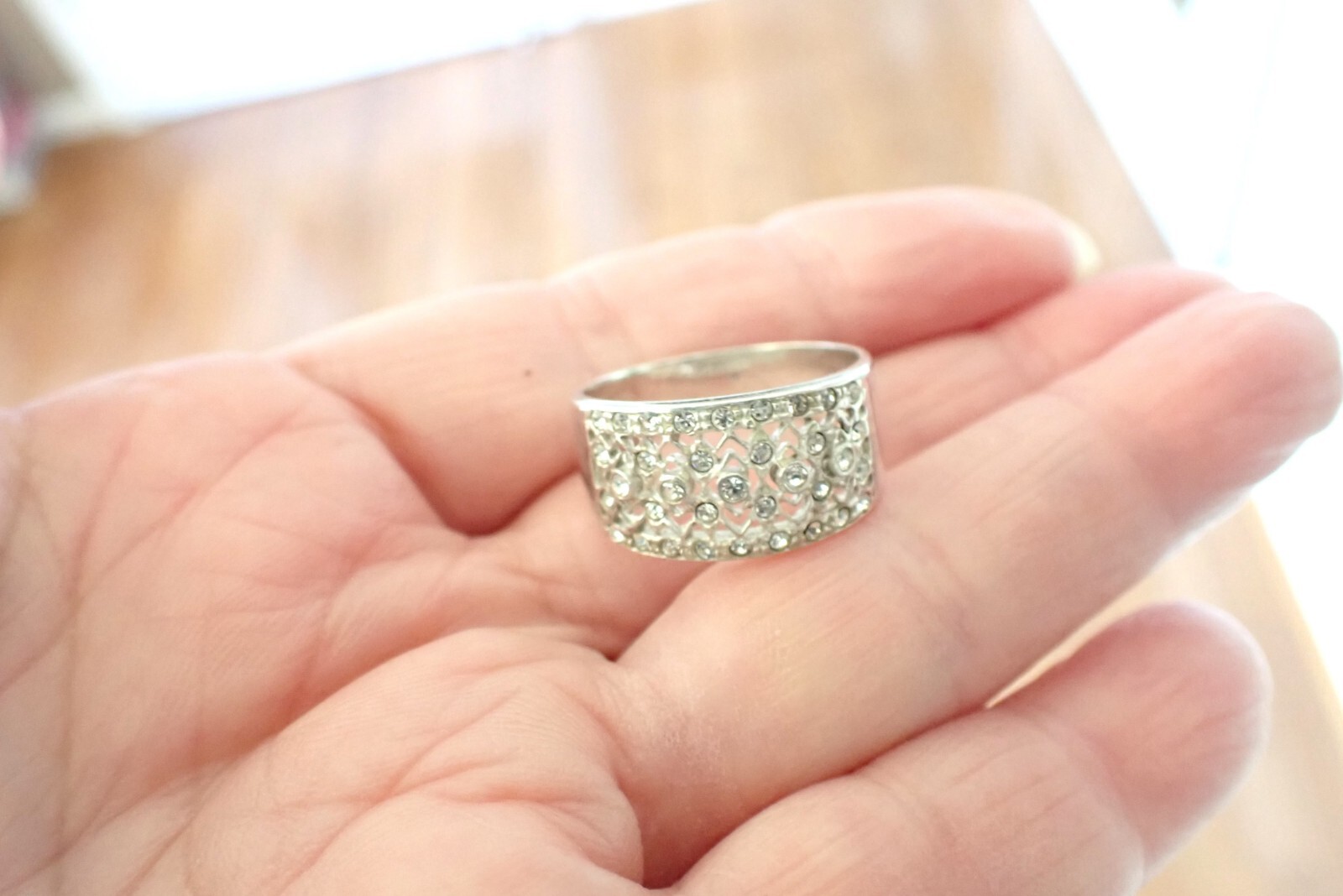 как выглядит Vintage Sterling Silver Deco Style Filigree Wide Band Ring W/ CZ Size 8.5 фото
