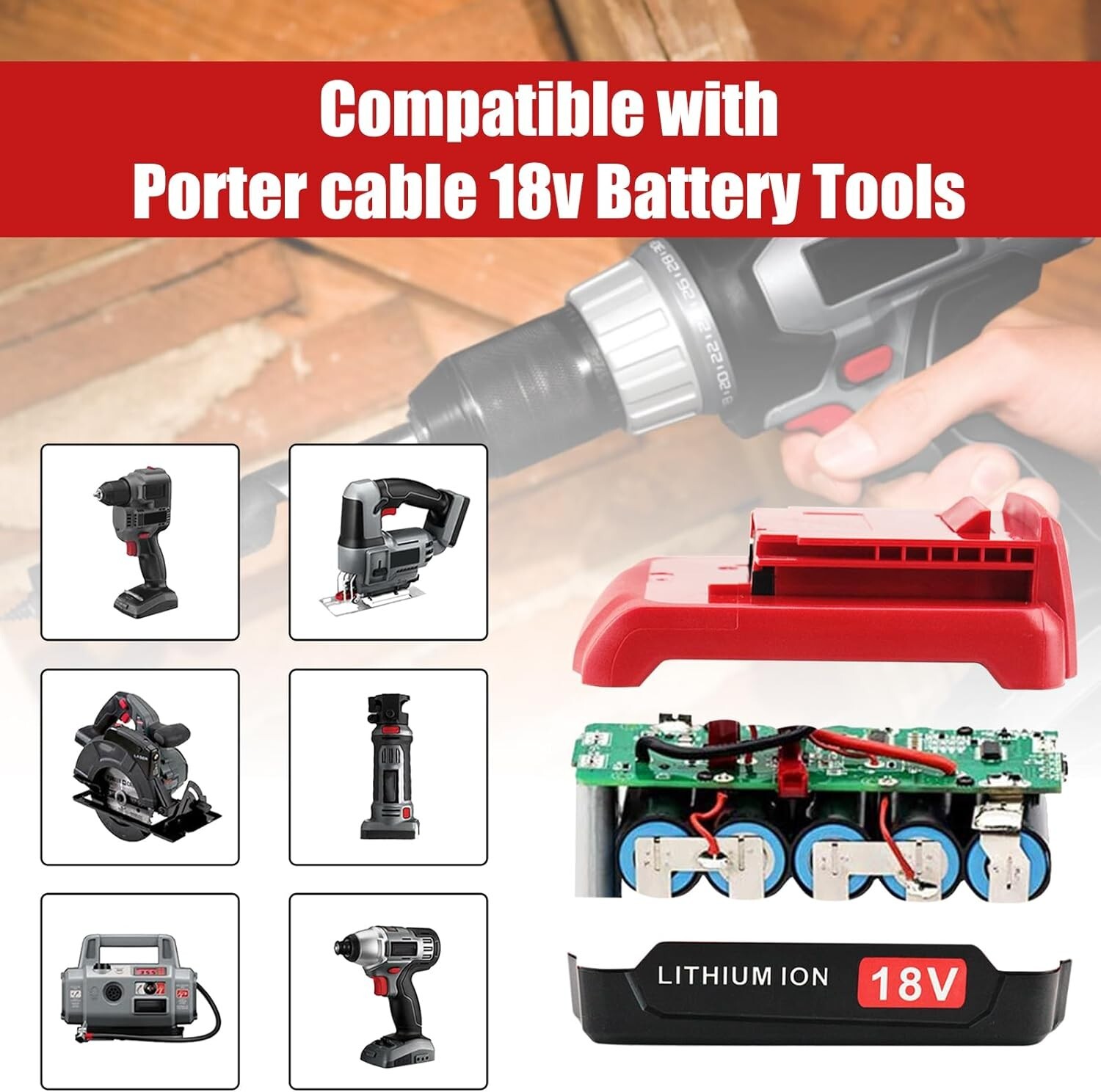 FIT FOR: PC1800RS Reciprocating saw,PC1801D drill,Porter Cable 18V TOOL