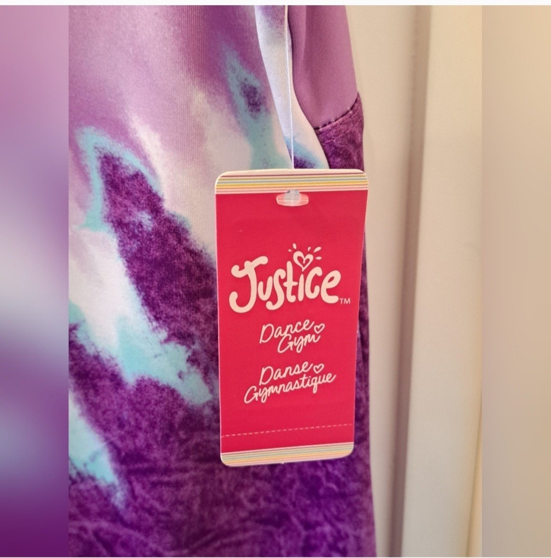 как выглядит Justice Purple Tie Dye Leotard Scrunchie Dance Gymnastics Girls L 12-14 NWT фото