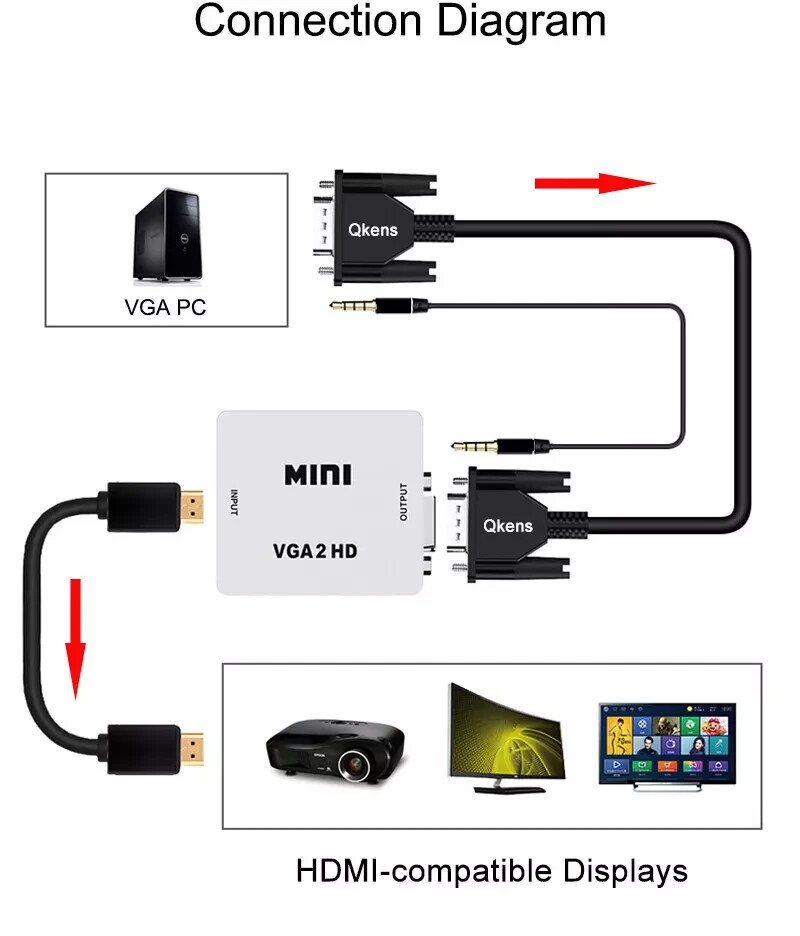 Mini VGA2HDMI VGA to HDMI Audio Video Conveter Adapter for DVD PC To TV Monitor