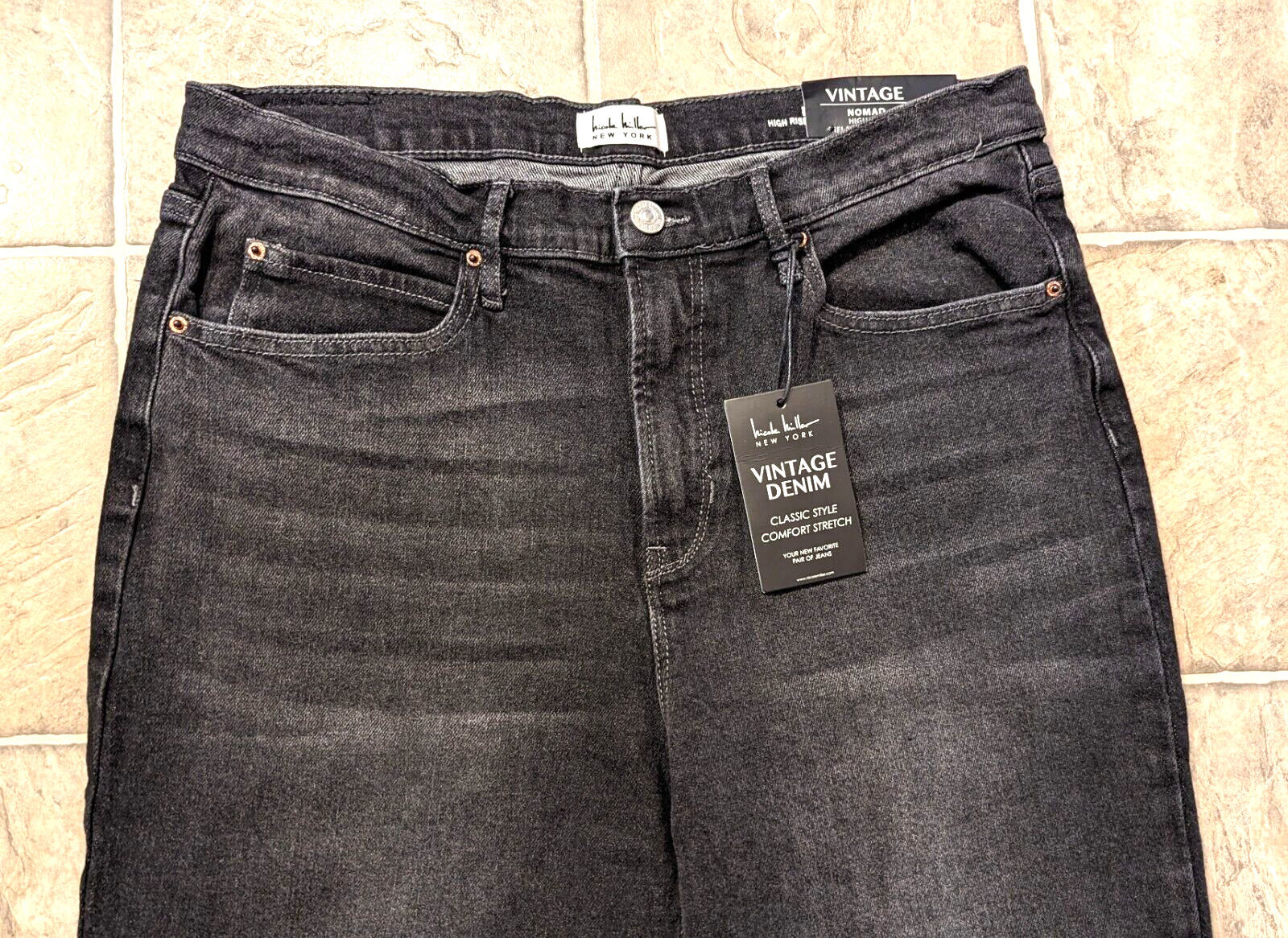 как выглядит New Nicole Miller sz 12 Vintage Nomad Jean High Rise relax straight black 2266 фото
