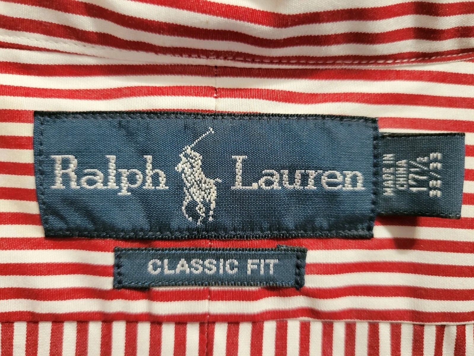 как выглядит Ralph Lauren Button Up Shirt Red White Striped Blue Pony Sz 17.5 Classic Fit фото