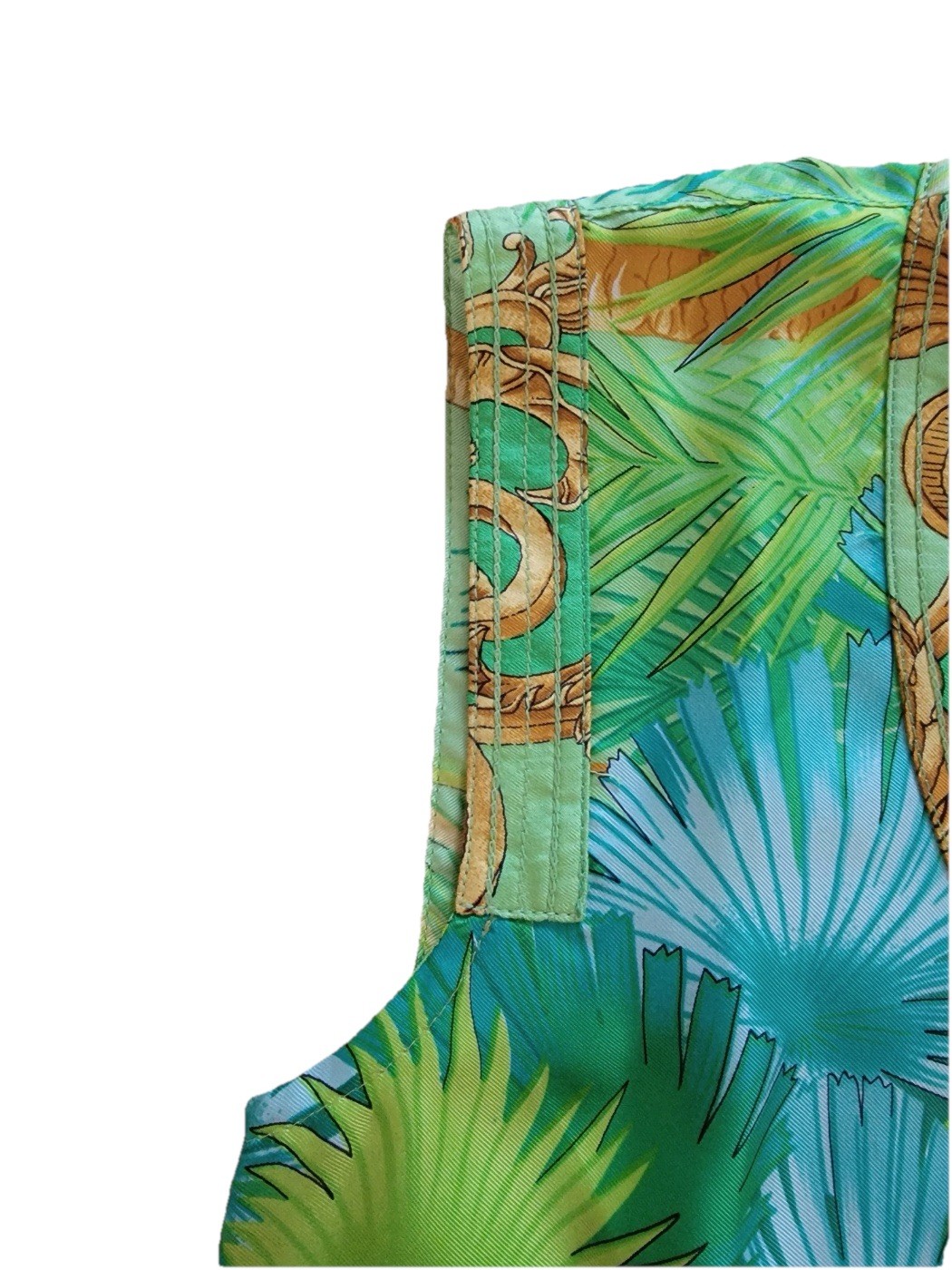 Vintage VERSACE Green Sleeveless Silk Blouse with Ornate Gold Pattern