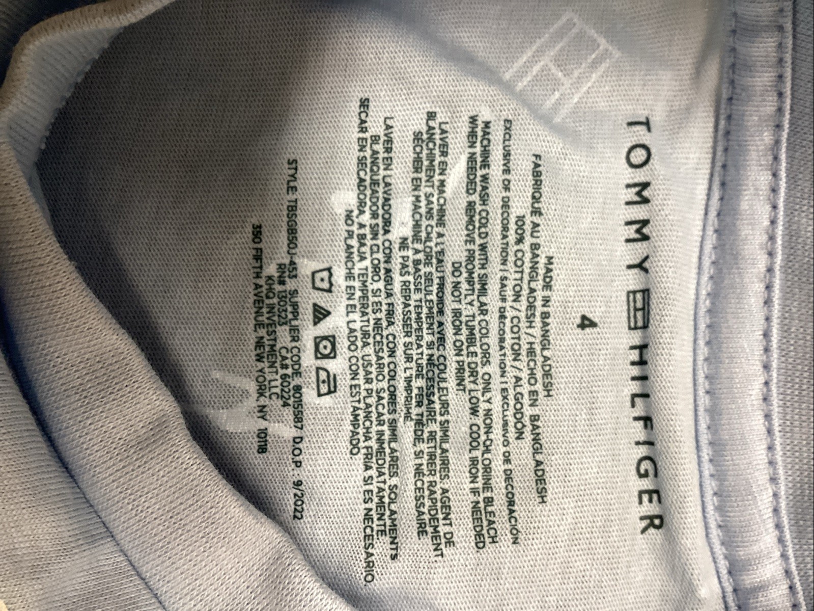 как выглядит Tommy Hilfiger Light Blue With White Lettering Kids Size 4 T-shirt фото