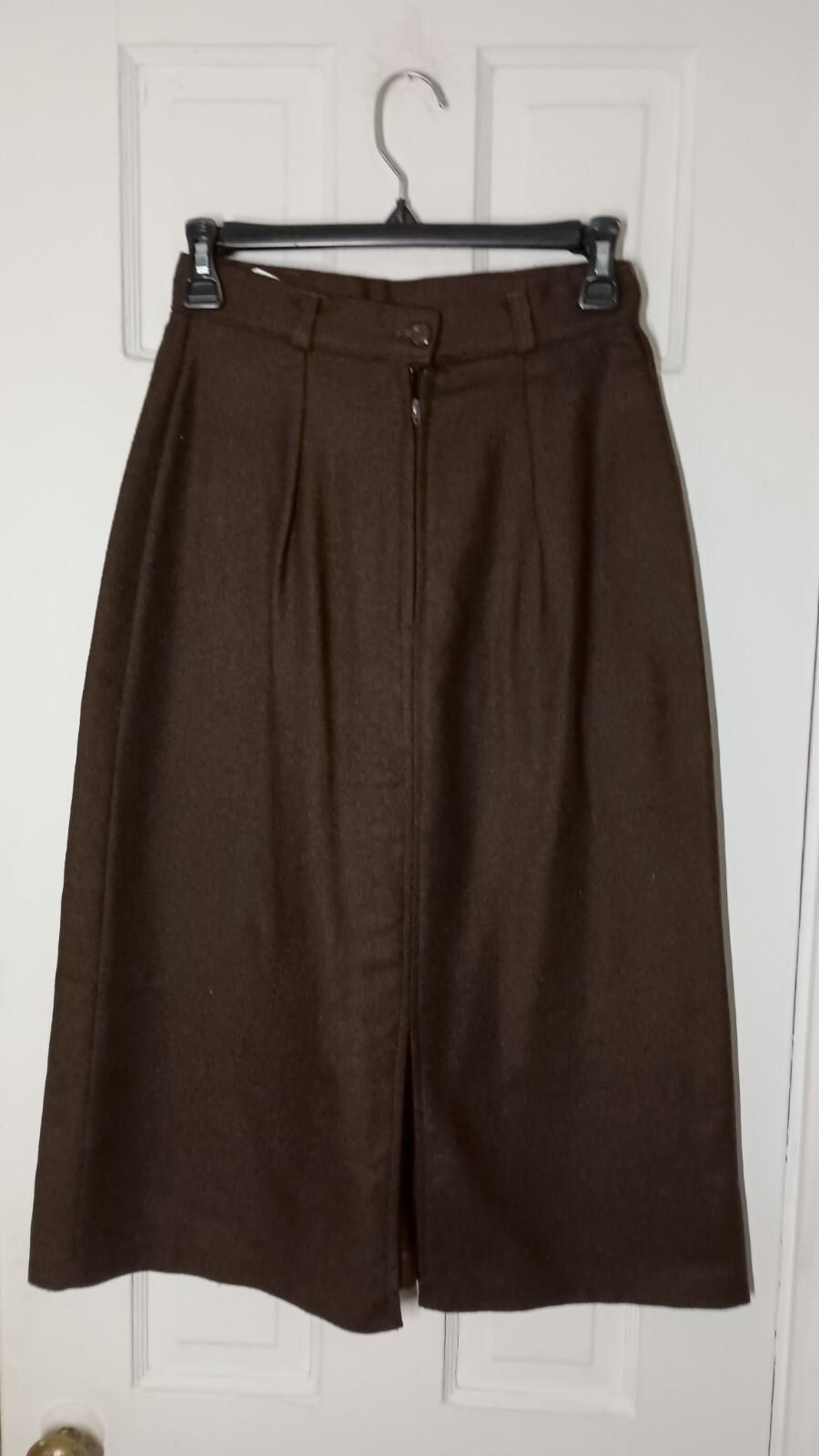 True Vintage 1970's Brown Wool Flared Midi Knee 70's Skirt S A1