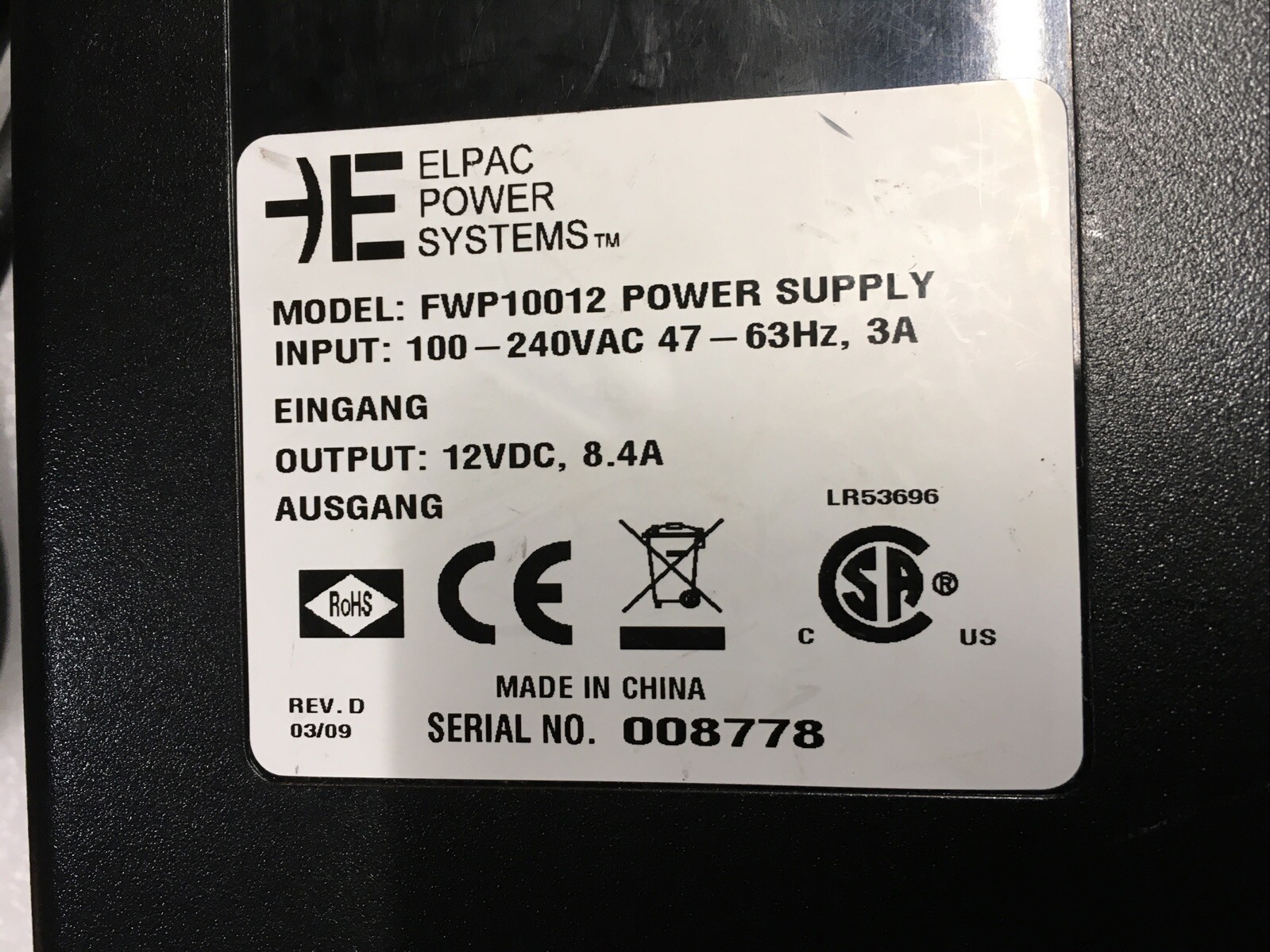 Genuine Elpac FWP10012 Power Supply 12V DC 8.4A 5 Pin Plug w/PC EUC