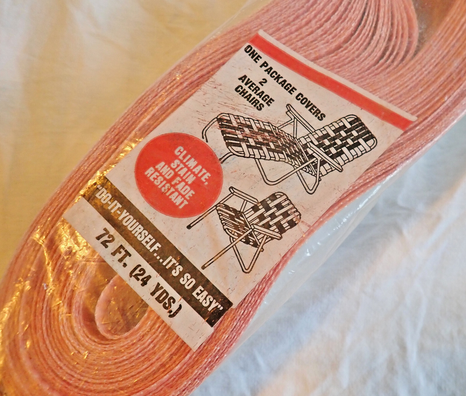как выглядит Vtg Wellington RE-WEB Kit 72 x 2 1/4 Lawn Chair Webbing White Red NOS No.20072 фото