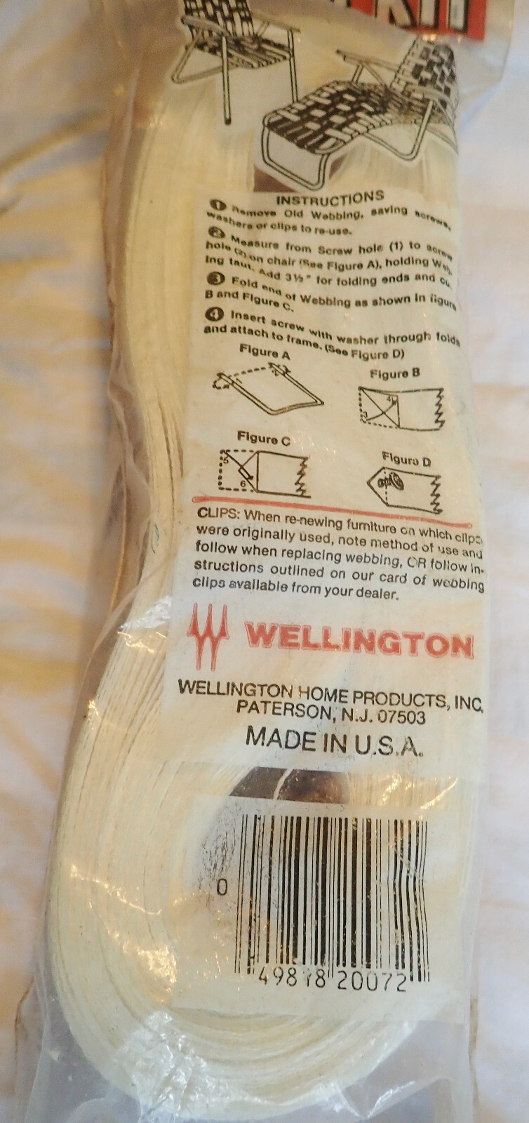 Vtg Wellington RE-WEB Kit 72 x 2 1/4 Lawn Chair Webbing White Red NOS No.20072