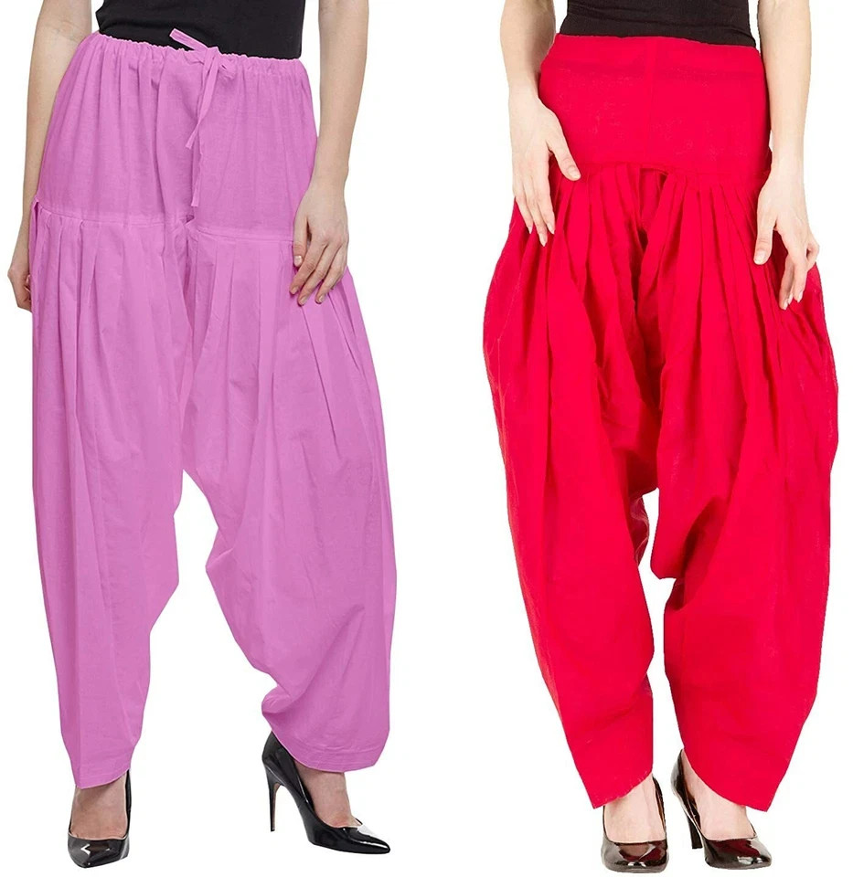 Women's Pure Cotton Plain Semi Patiala Salwar Pant Red Baby Pink Pack Of 2Pcs