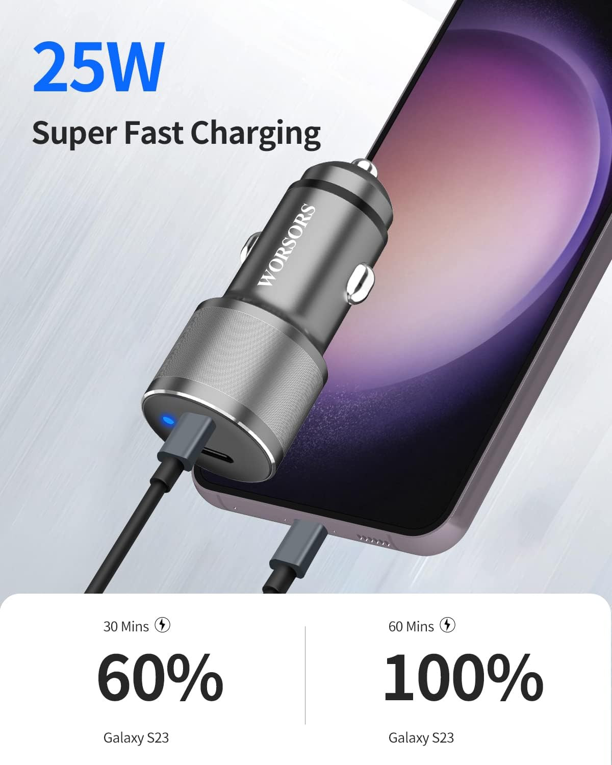 Dual USB C Car Charger, 60W PD 30W 30W Super Fast Charging Adapter Metal for