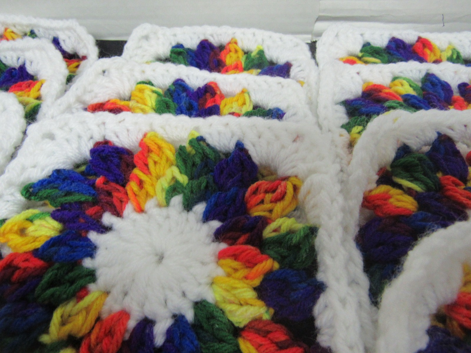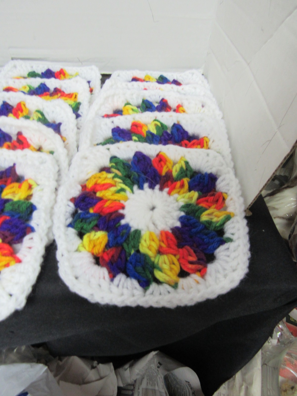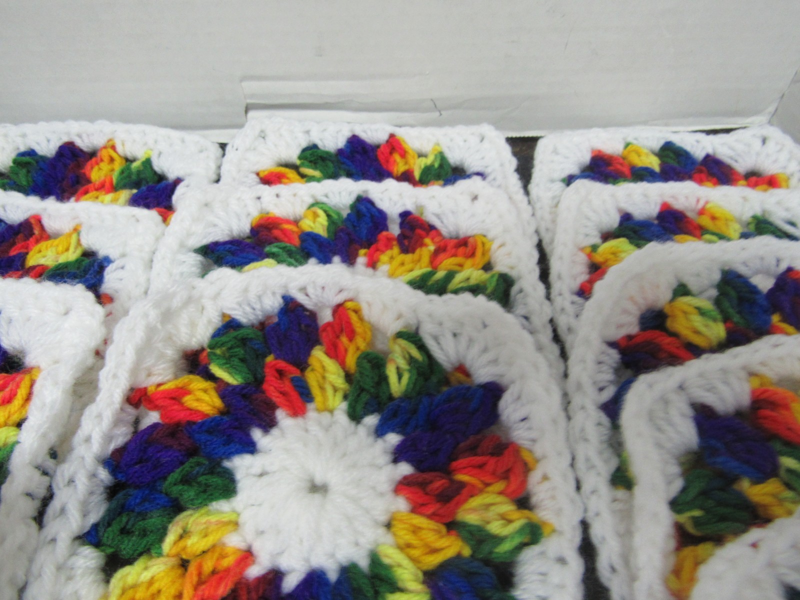 как выглядит Lot of 20 5 Variegated Colors and White Crochet Granny Squares Blocks фото