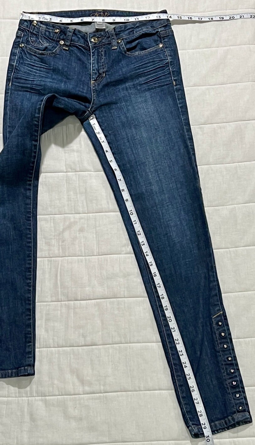 Cache Womens Jeans Size 4 Blue Skinny Jewel Pants 28x30 Stretchy MSRP 120 Y2K