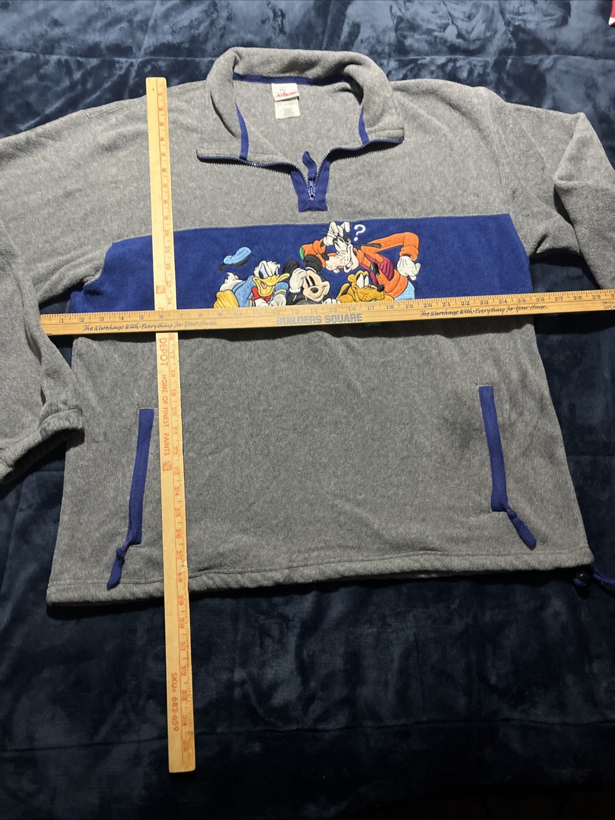как выглядит VTG Disney Men s Gray Blue Mickey And Friends Fleece Quarter-Zip Pullover L фото