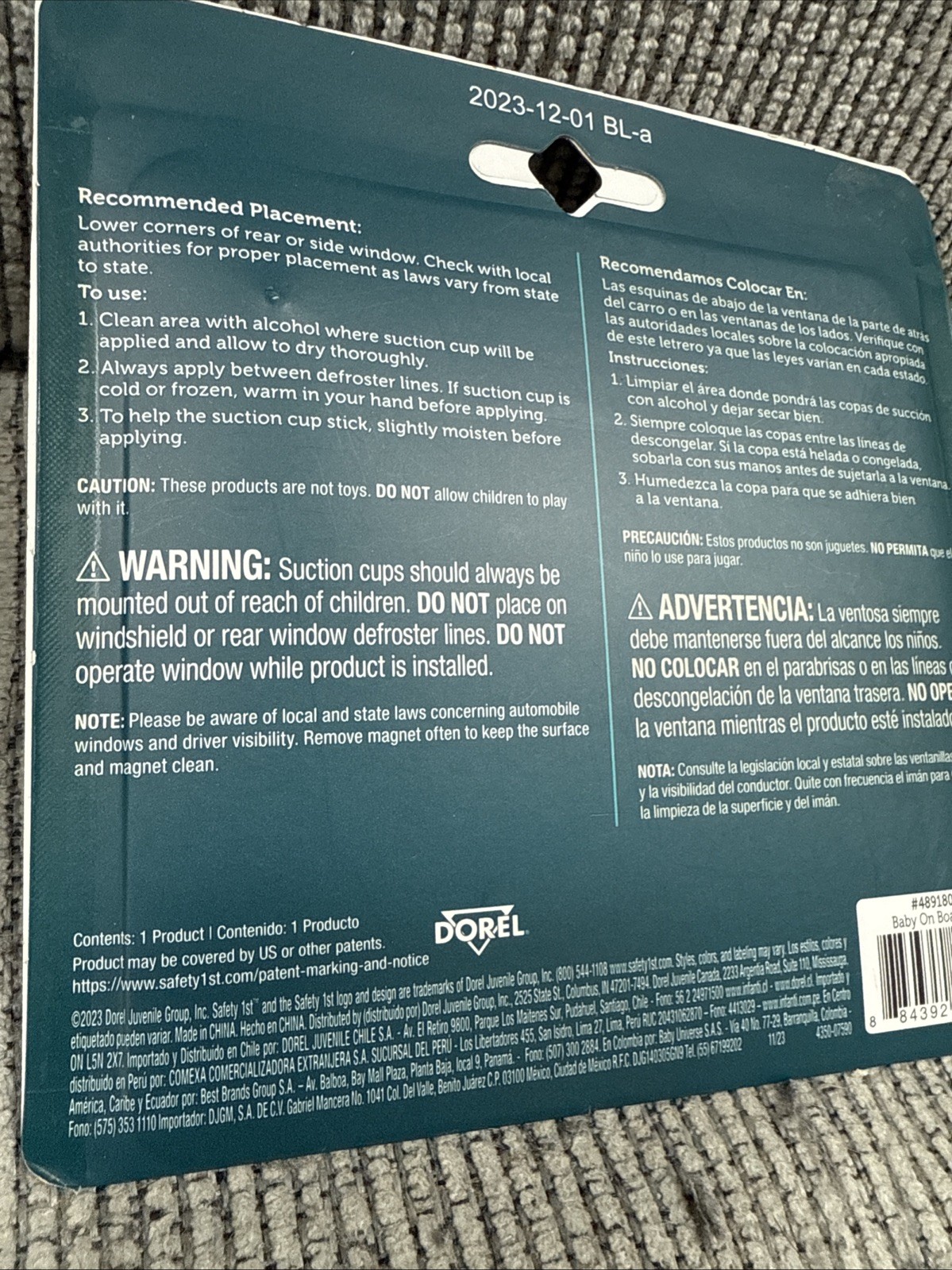 Safety 1st Baby on Board Suction Cup Yellow Sign New