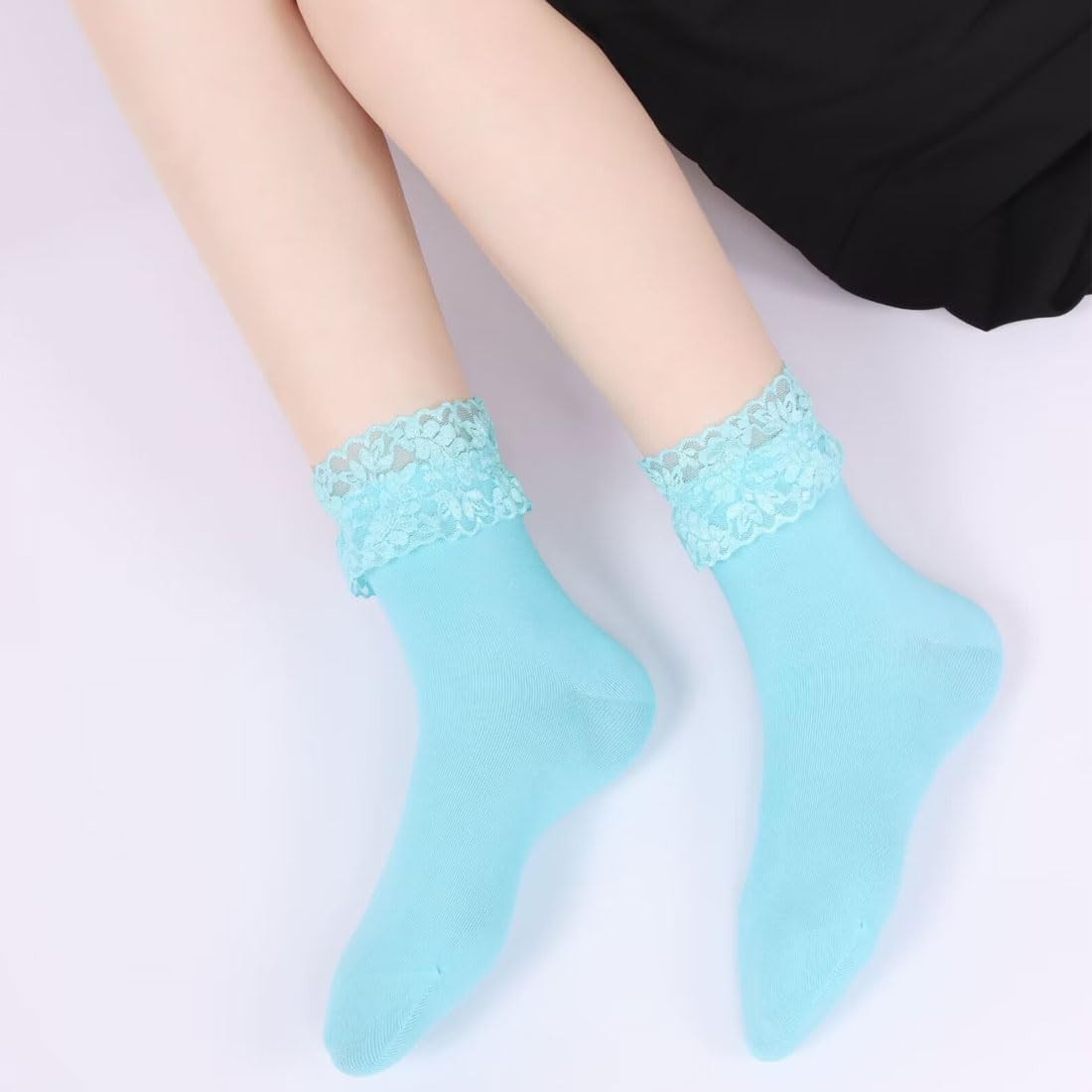 Women Ruffle Socks, Lace Frilly Girl Princess Cotton Ankle Socks 3 Pack Aqua...