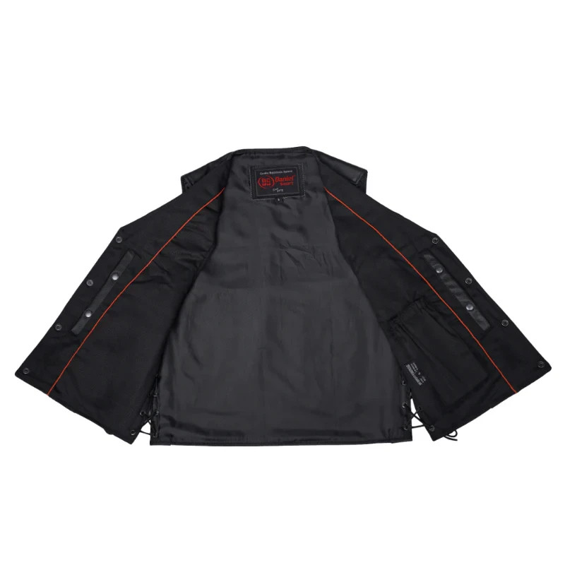 Men's SOA Collarless Leather Vest Motorcycle Biker Club Concealed Carry Outlaws