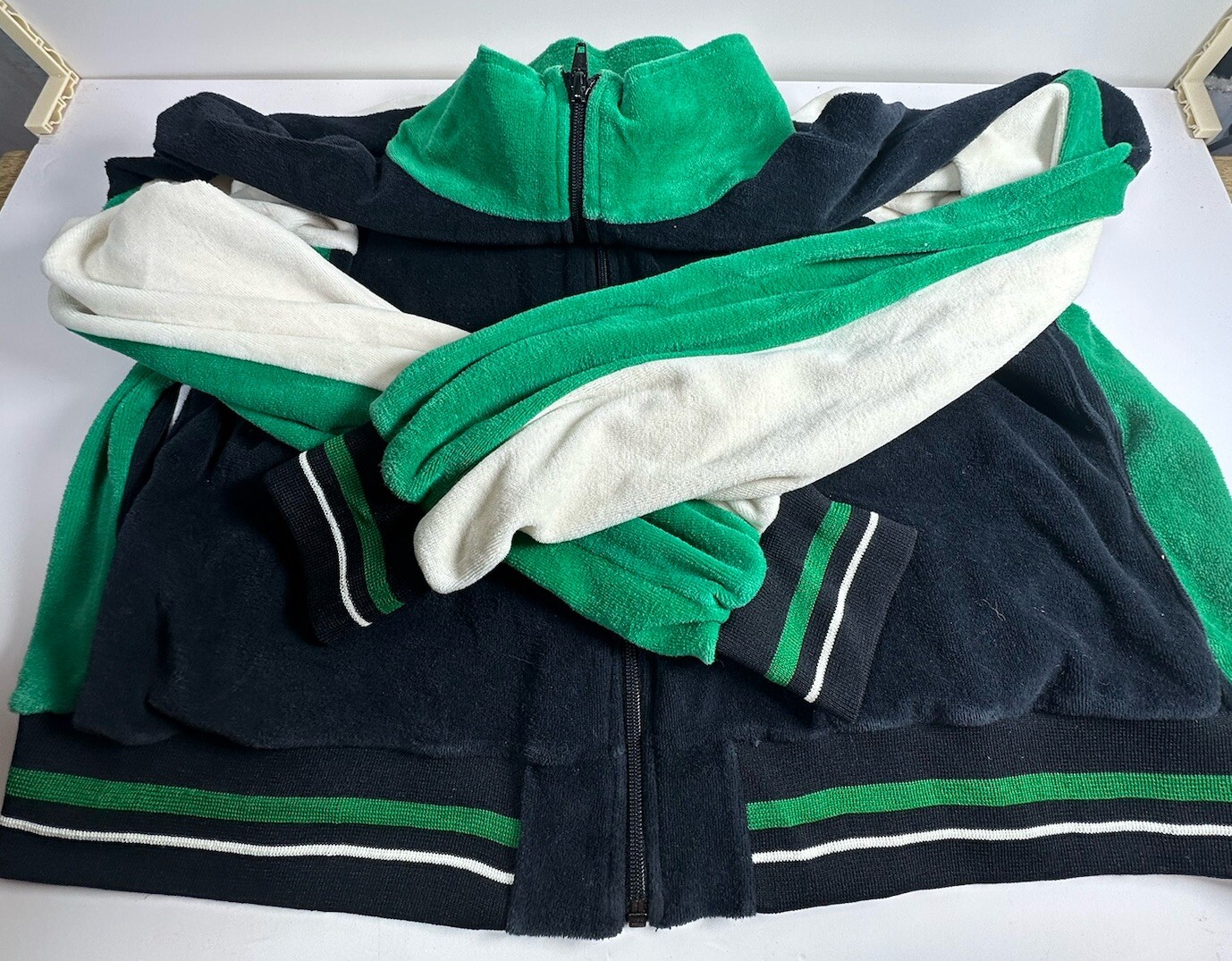 как выглядит 2X Big VTG 70s Zwickel warm up track jacket white full zip Green Blue Cream A фото