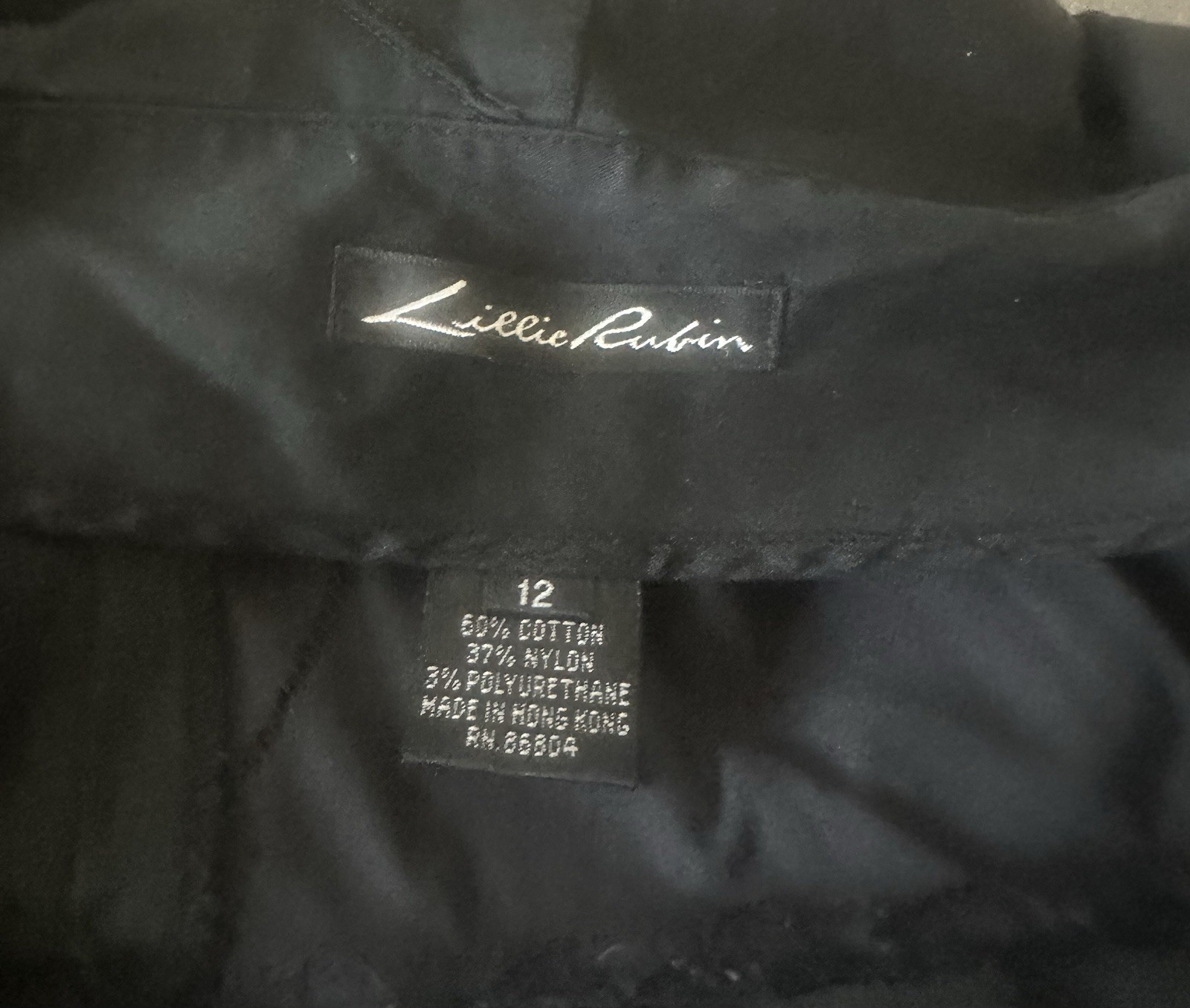 LILLIE RUBIN BLACK PANTS - 12 - VINTAGE- scroll pattern stretch - solid
