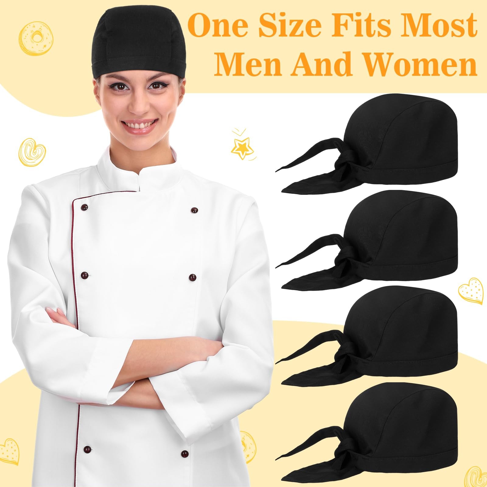 Chef Hat Tie Back for Men Adjustable Chef Cap Bandana Skull Cap Black Breatha...