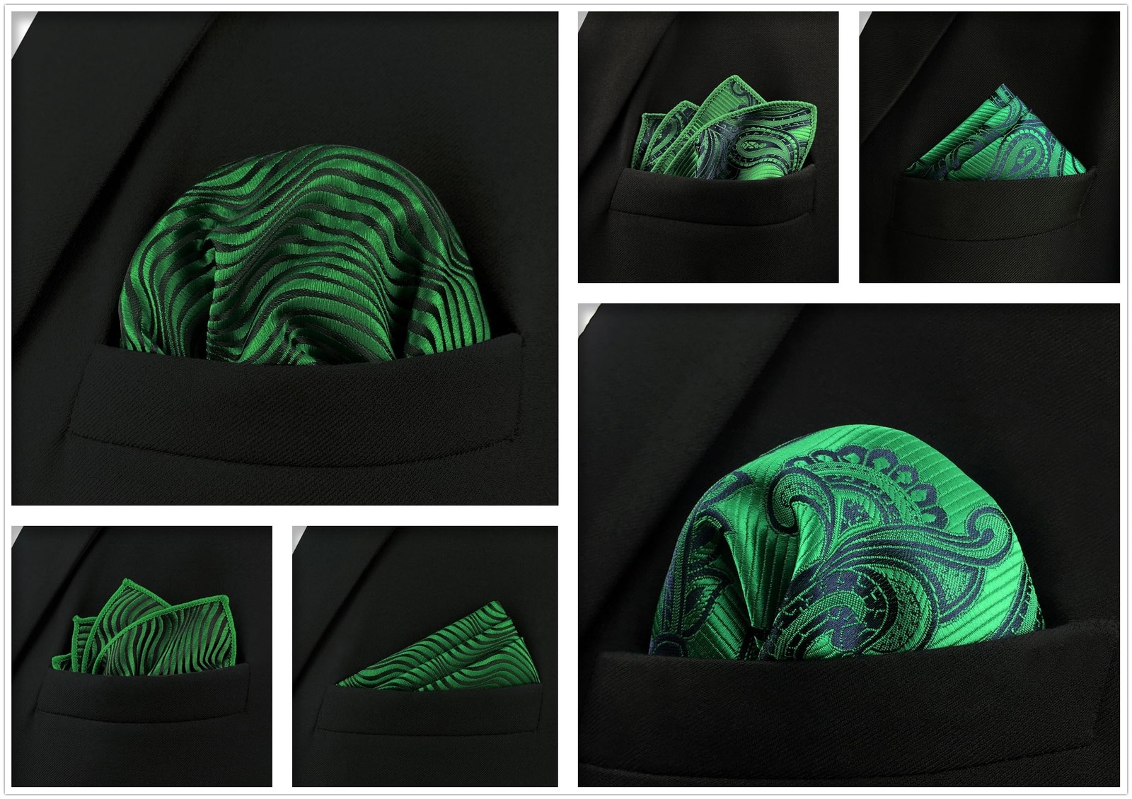 SHLAX WING 5 Pieces Assorted Mens Silk Pocket Square Handkerchiefs Set Lot 84