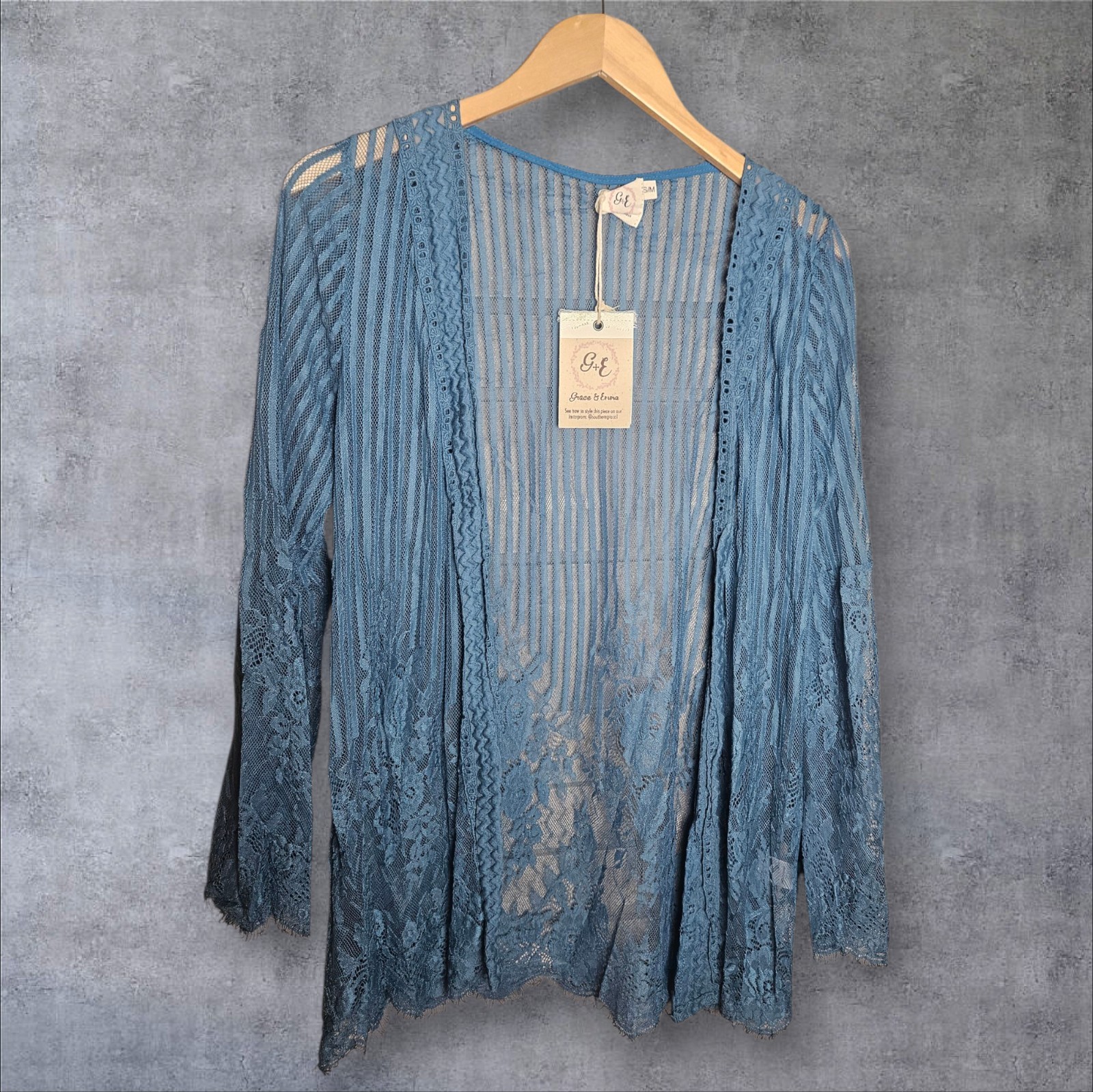 NWT Womens Small/Medium Teal Blue Lace Kimono Cardigan