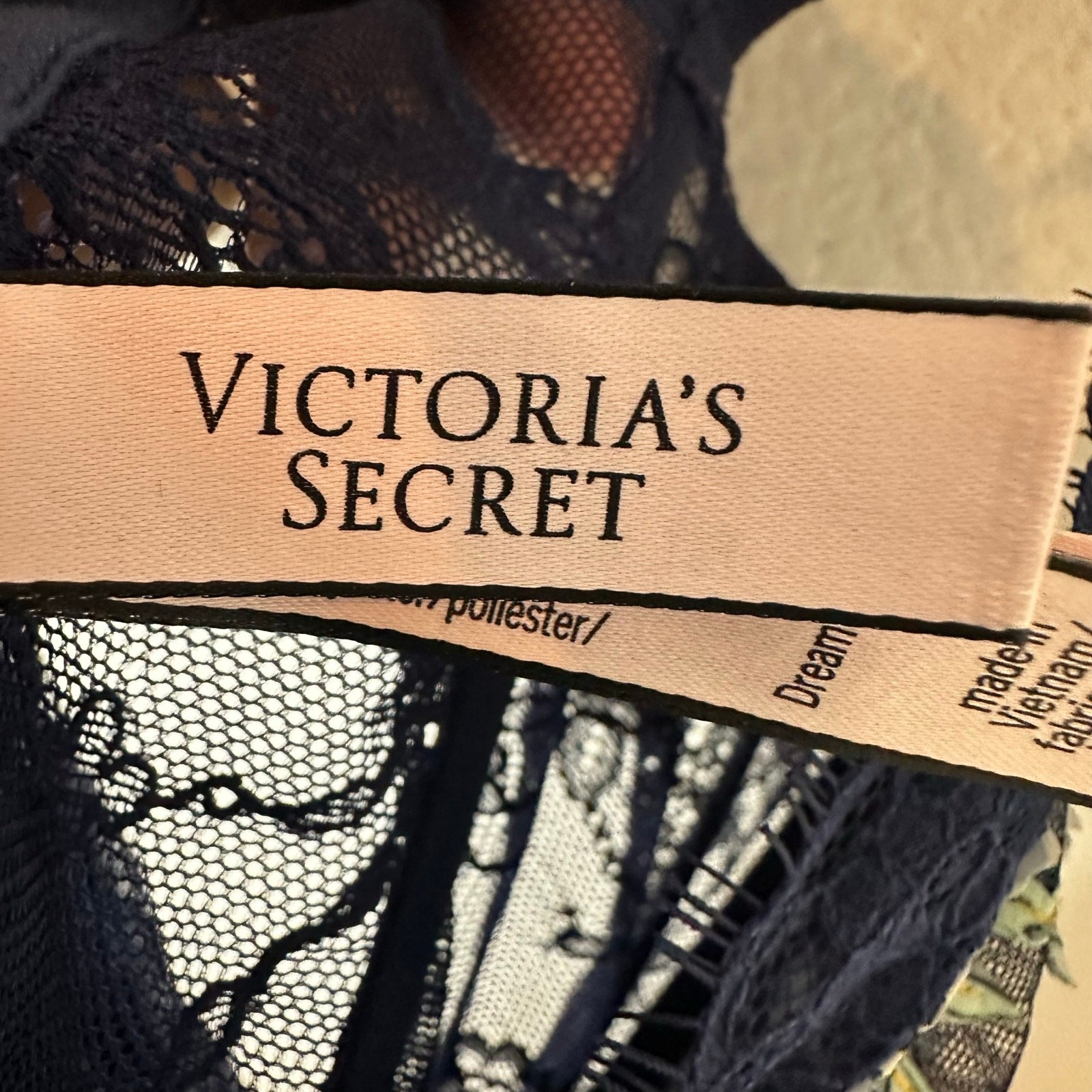 как выглядит Victoria Secret dream angel unlined lace up Corset bra top navy floral фото