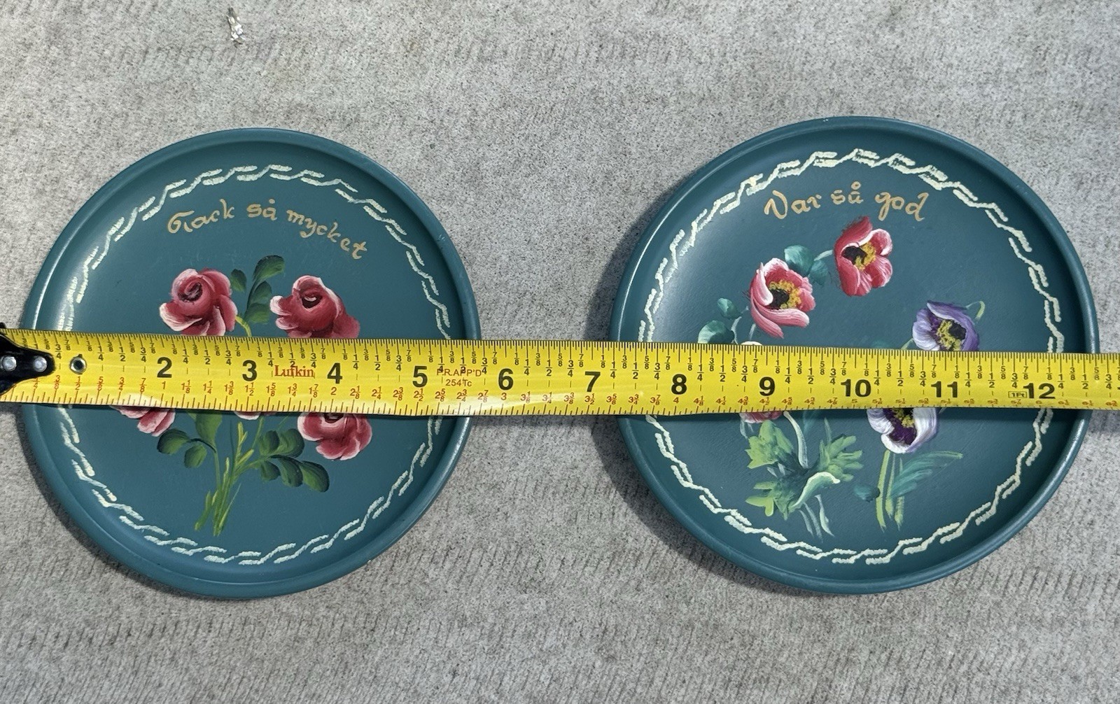 Pair Of Hand Painted Decorative Norwegian Rosemaling Wooden Plates 5.5