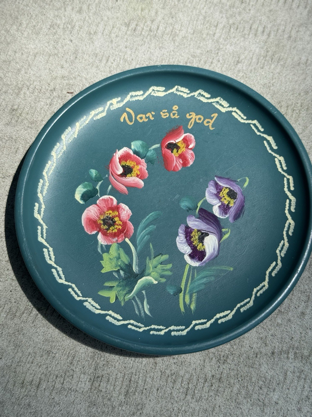 как выглядит Pair Of Hand Painted Decorative Norwegian Rosemaling Wooden Plates 5.5 фото