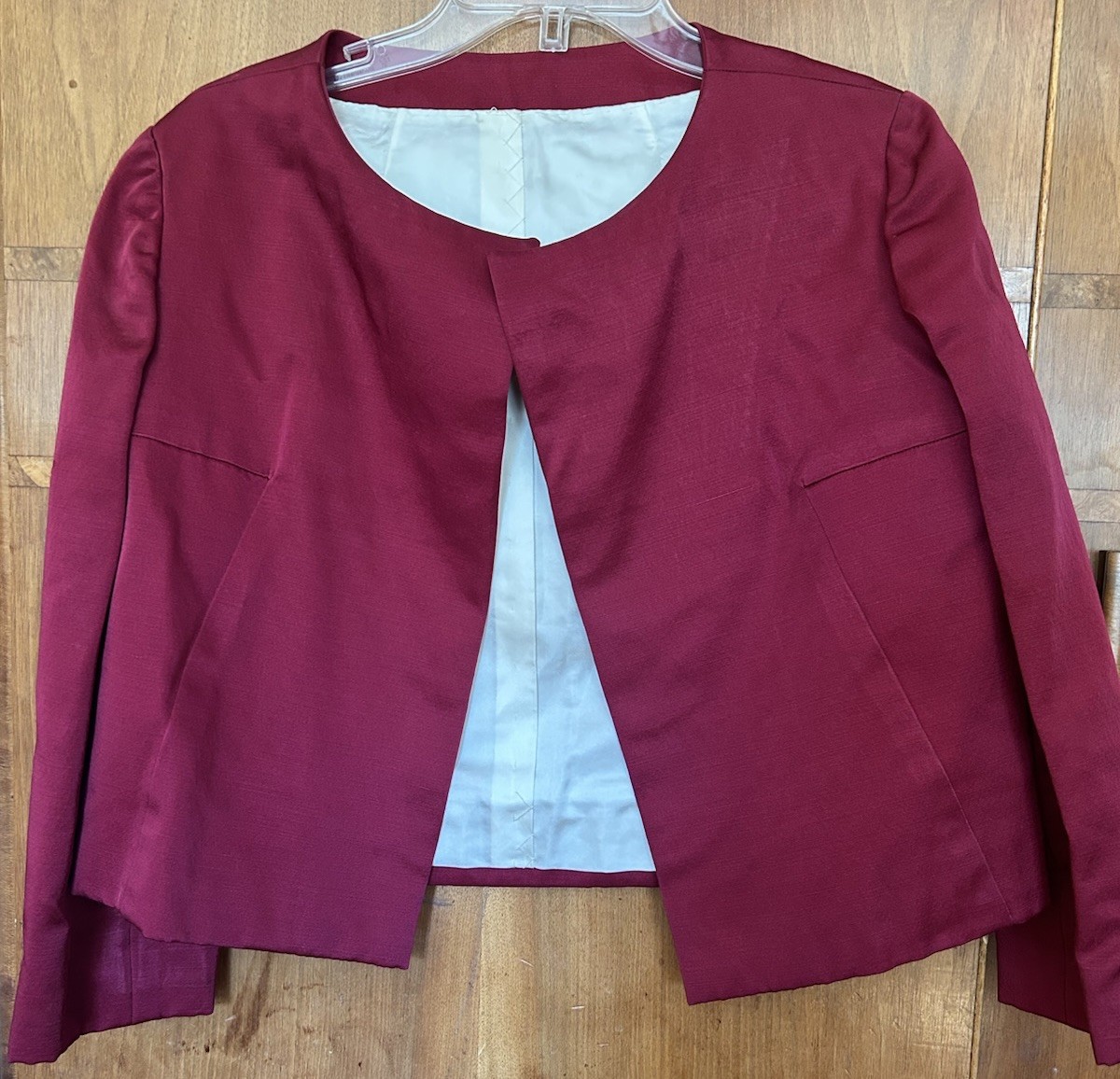 VTG Early 60 s Woman s Dress Cropped Jacket Set Crimson Sateen Size 4 Mod