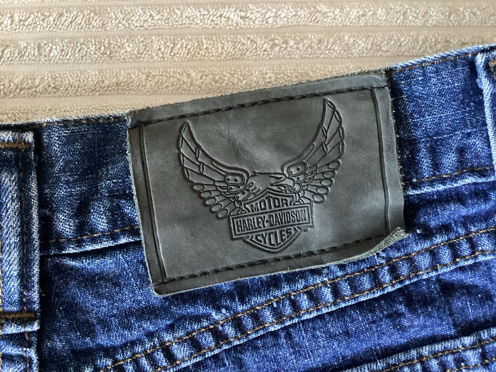 как выглядит Harley Davidson Vintage Blue Jean Shorts Laced Up Leather Sides Womens Size 6 фото