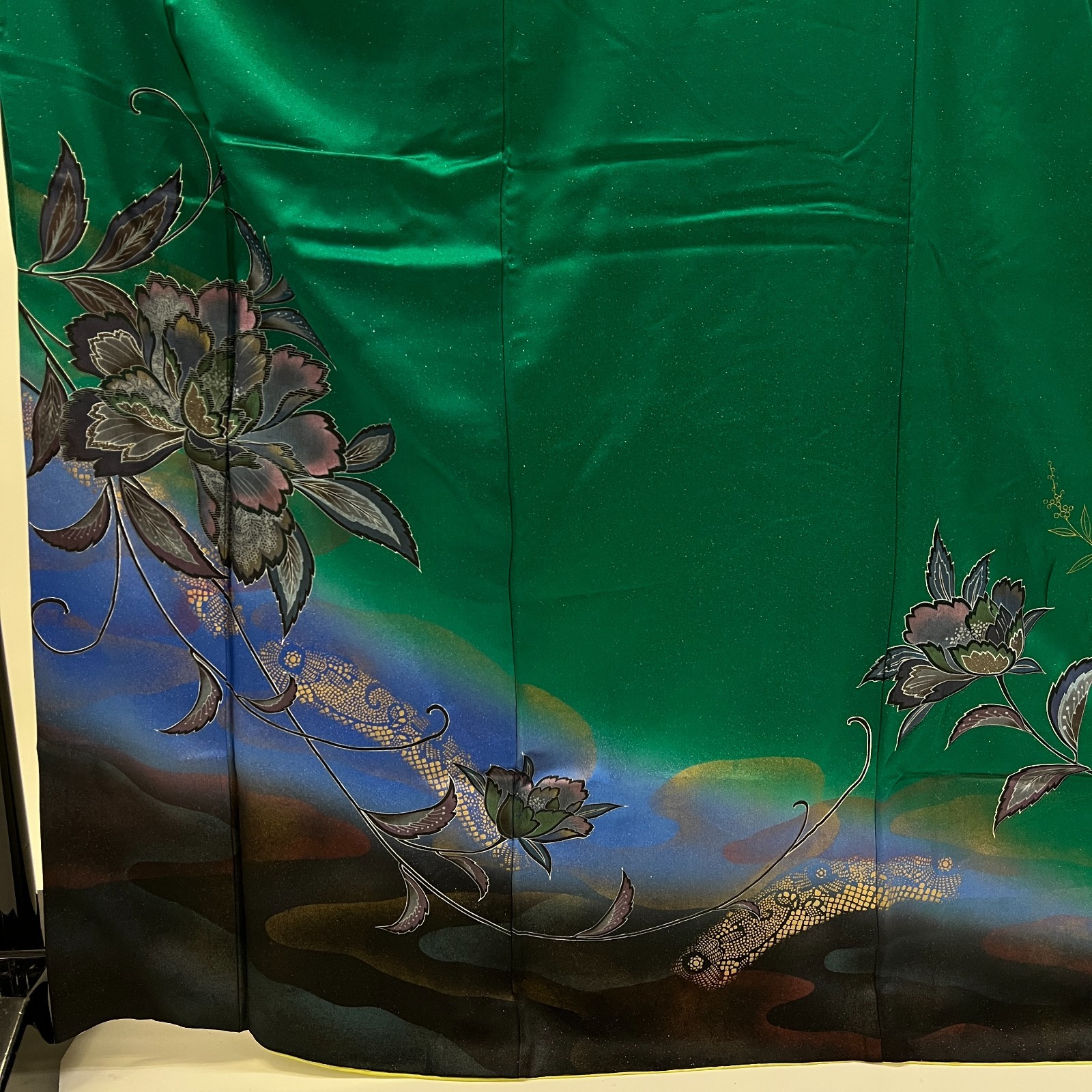 • Japanese Vintage Kimono Furisode silk GRN Gorgeous Expensive Dirt Height 64.3in
