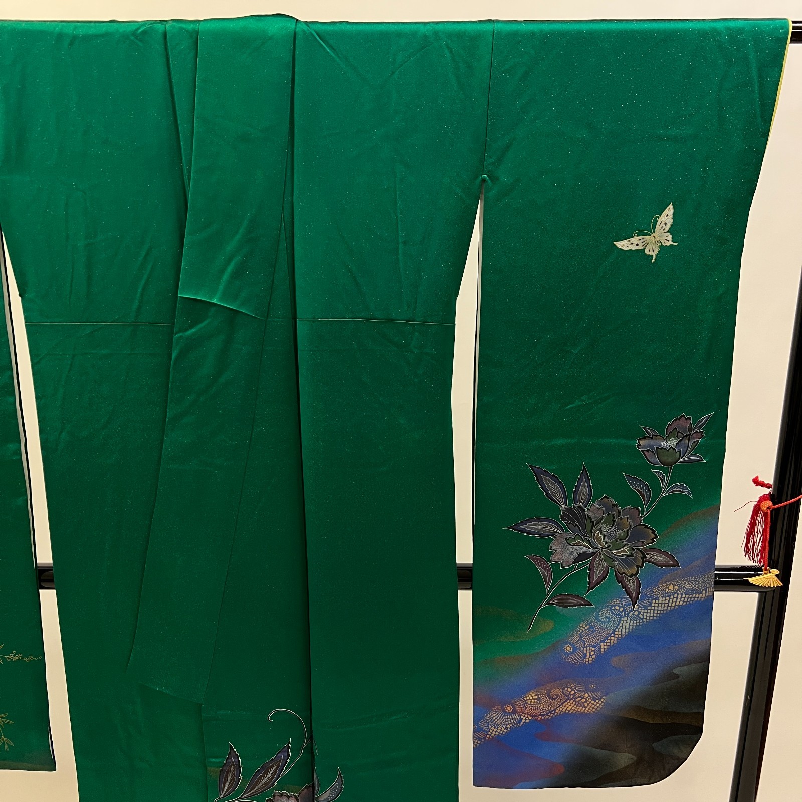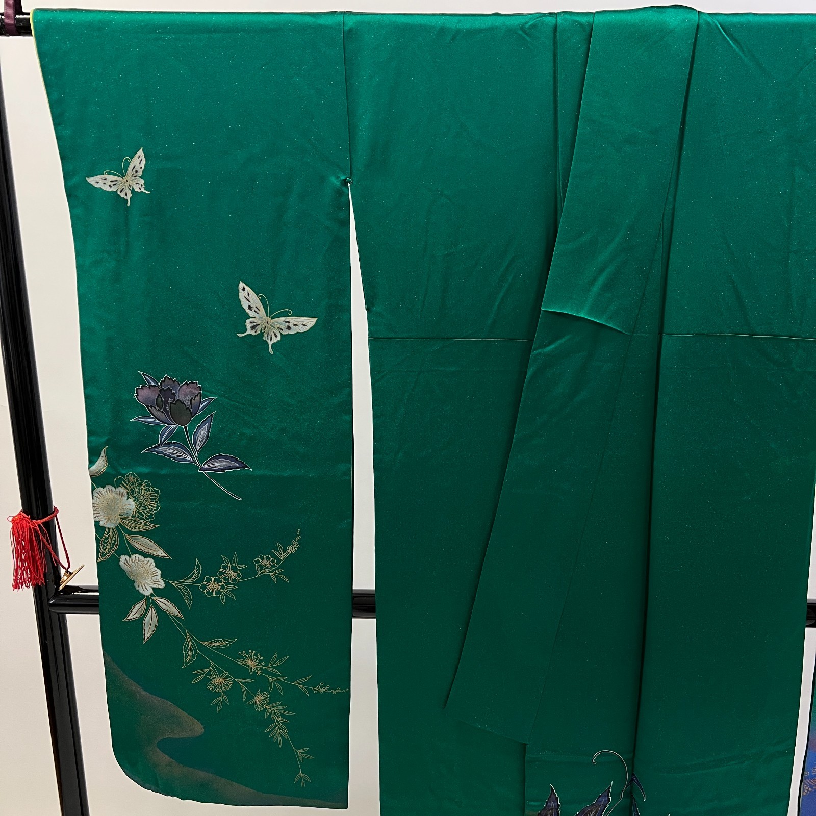 Japanese Vintage Kimono Furisode silk GRN Gorgeous Expensive Dirt Height 64.3in