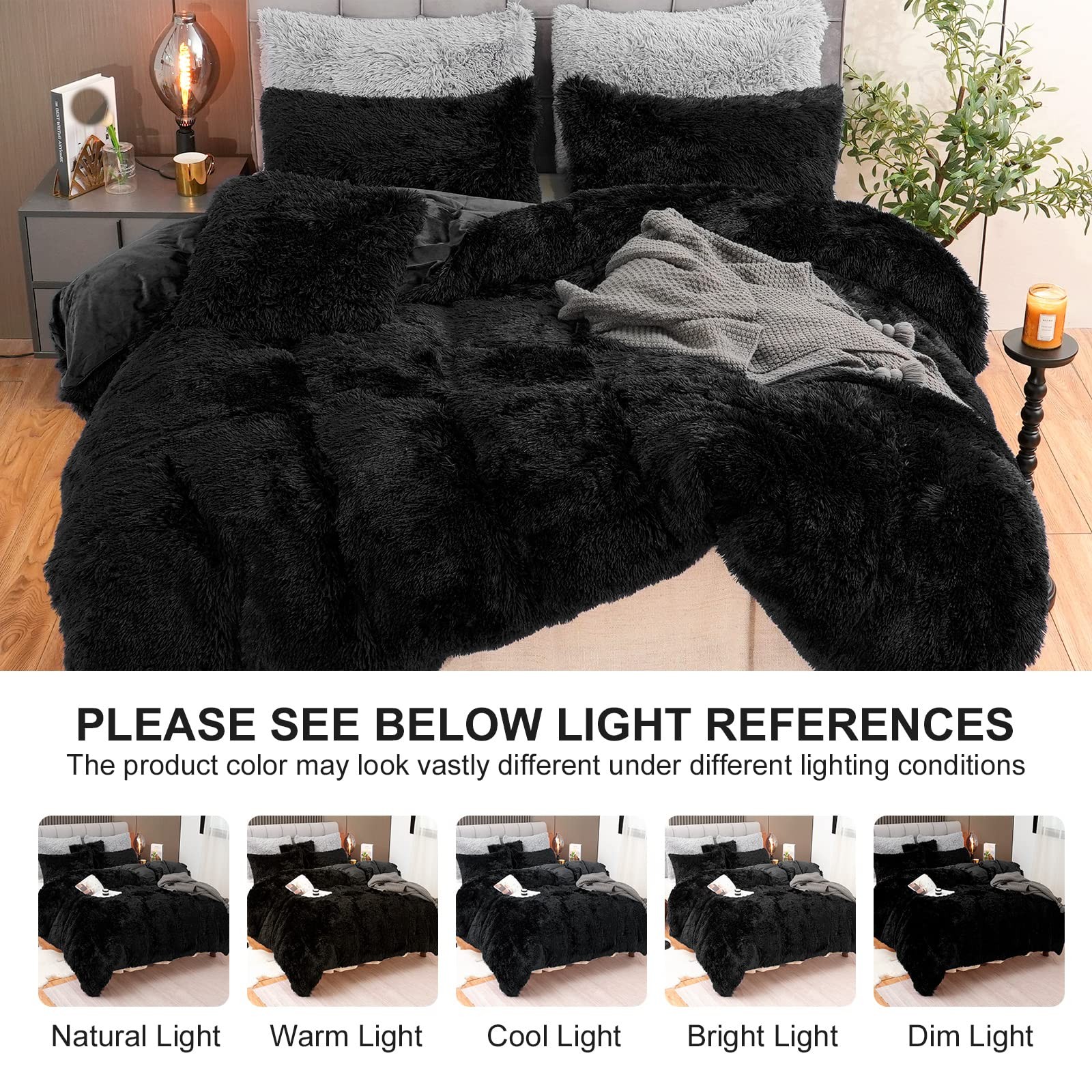 Fluffy Plush Black Duvet Cover Set, Luxury Ultra Soft Velvet Fuzzy Comforter ...