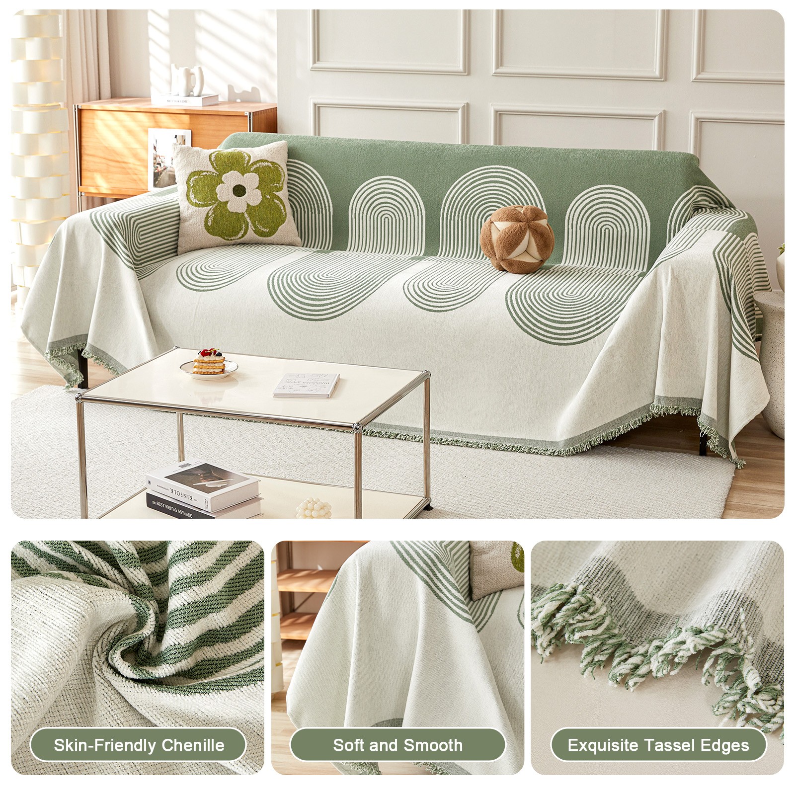 Boho Sofa Covers Reversible Chenille Sectional Couch Covers Dog Couch Protector