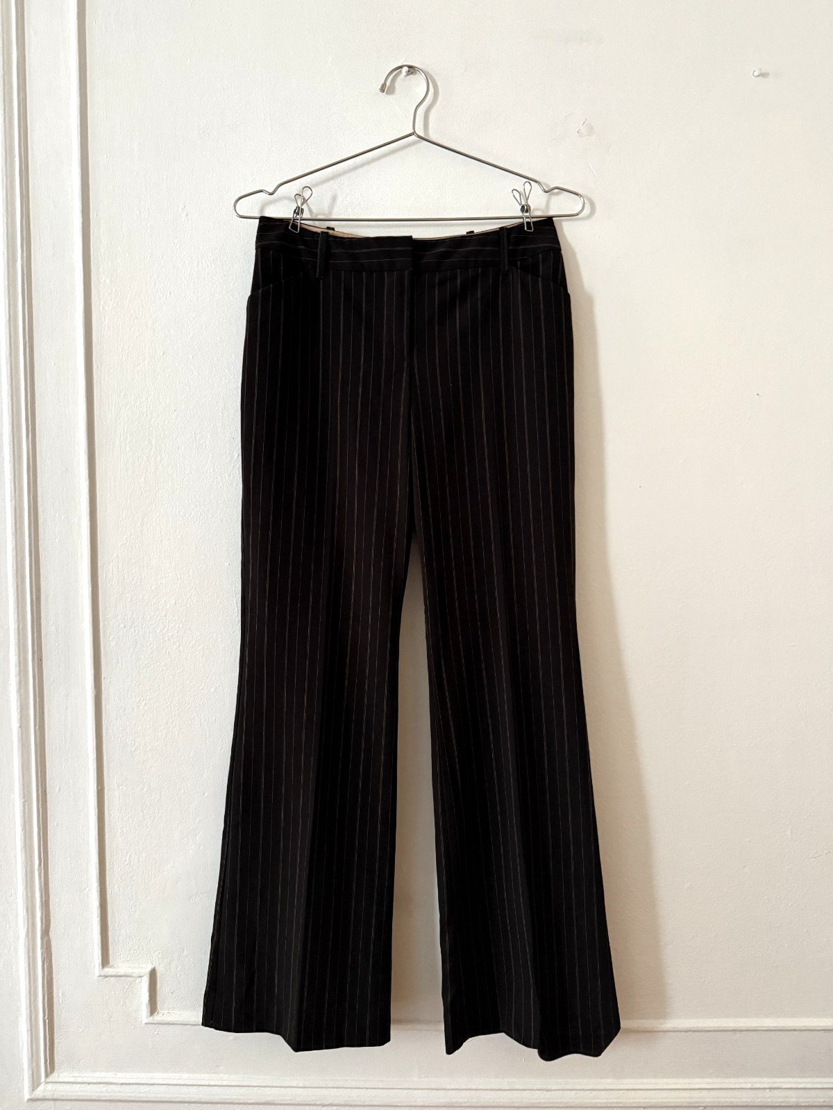 как выглядит 90s Brown Pinstripe Mid-Rise Straight Leg Dress Pants US 9 30" Waist фото