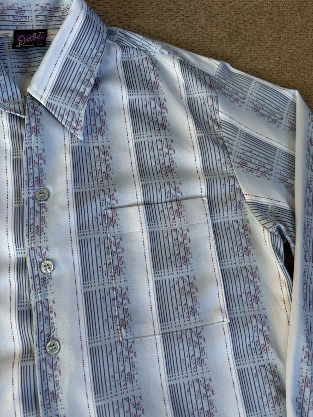 как выглядит Vintage 70s Joel Cal Made Shirt Mens M Blue Geometric Print Button Disco Lounge фото