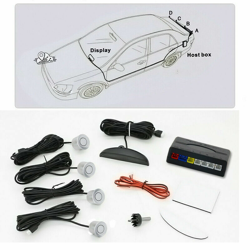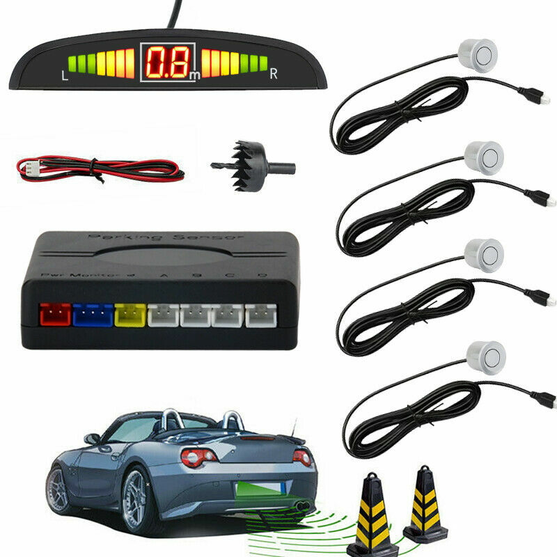 4Parking Sensor Car Auto Backup Reverse Rear Radar System Alert Alarm Kit Silver
