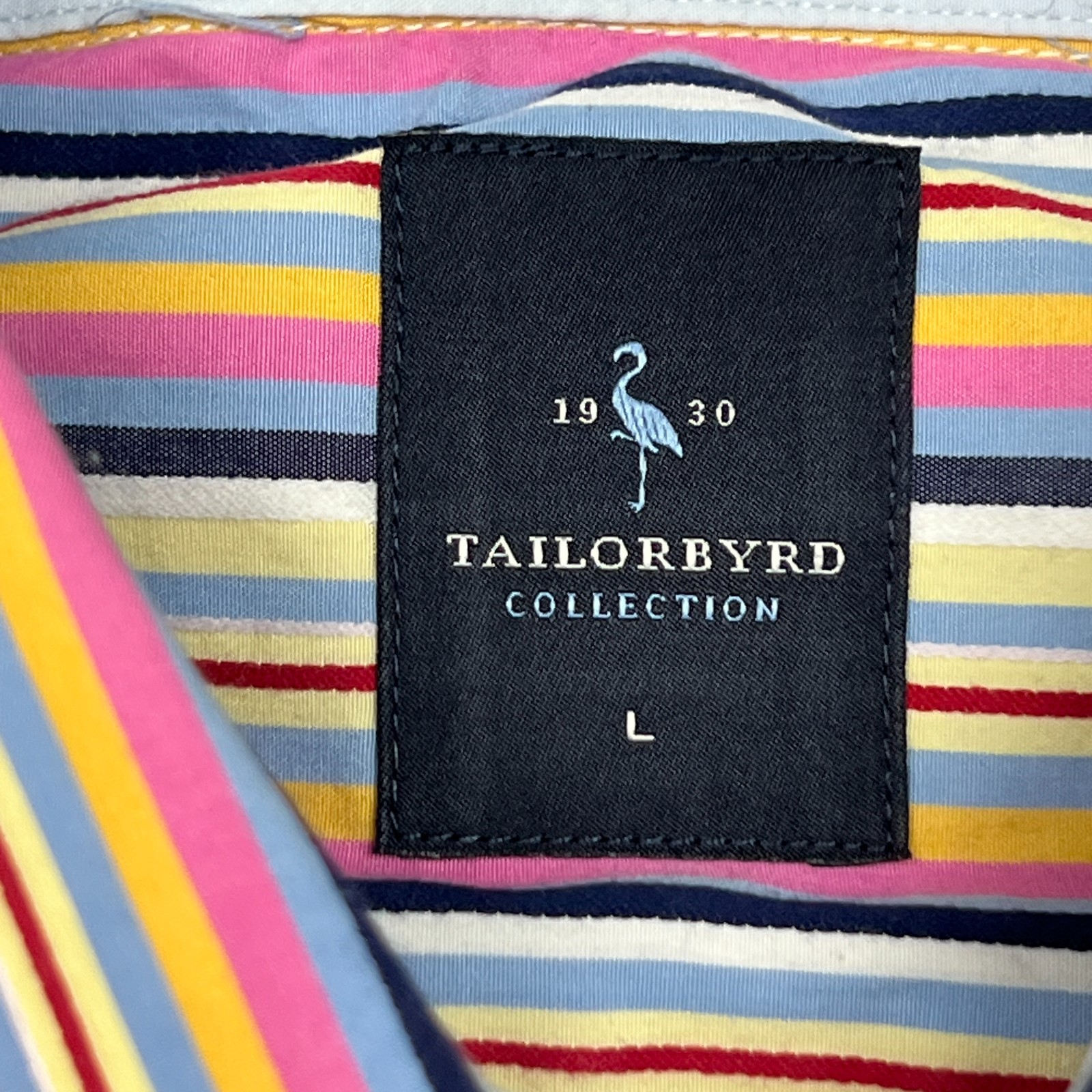 Tailorbyrd Shirt Mens Large Blue Striped Colorful Preppy Office Casual