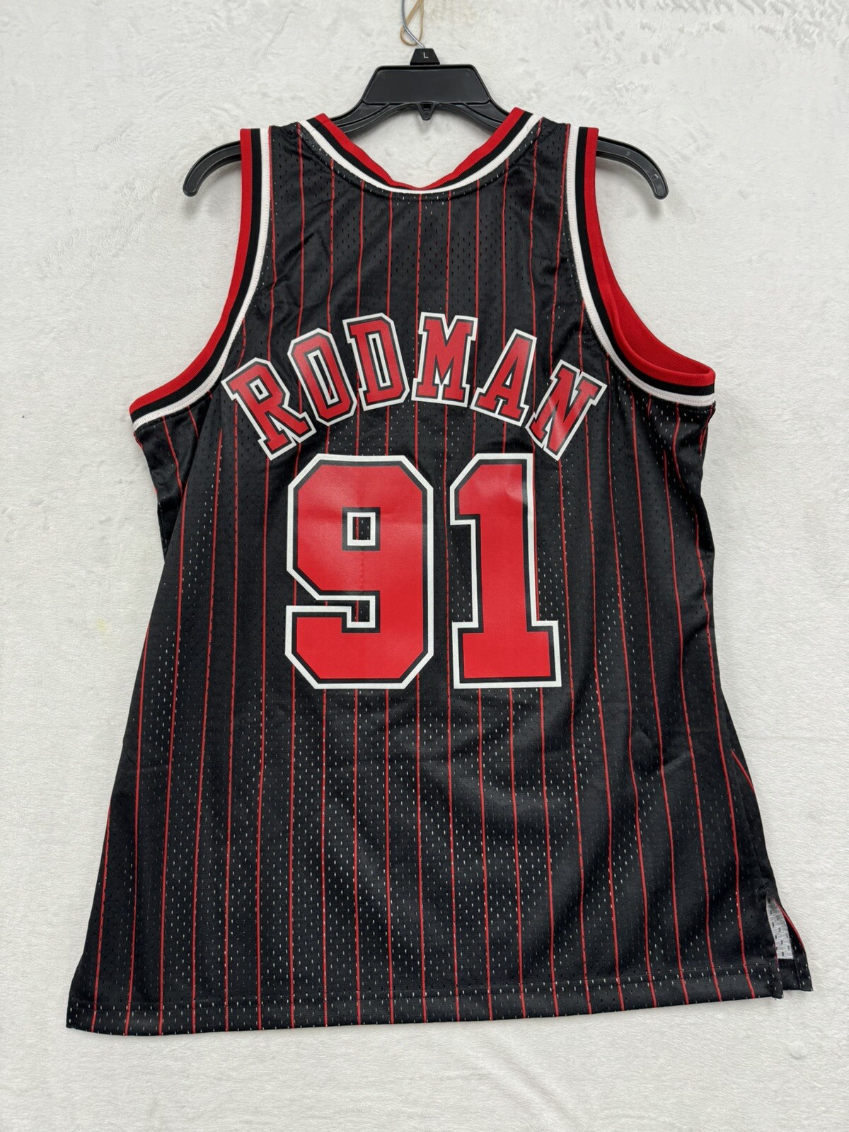 как выглядит Mens Dennis Rodman Black Chicago Bulls 1995/96 Hardwood Classics Jersey Size Lg фото