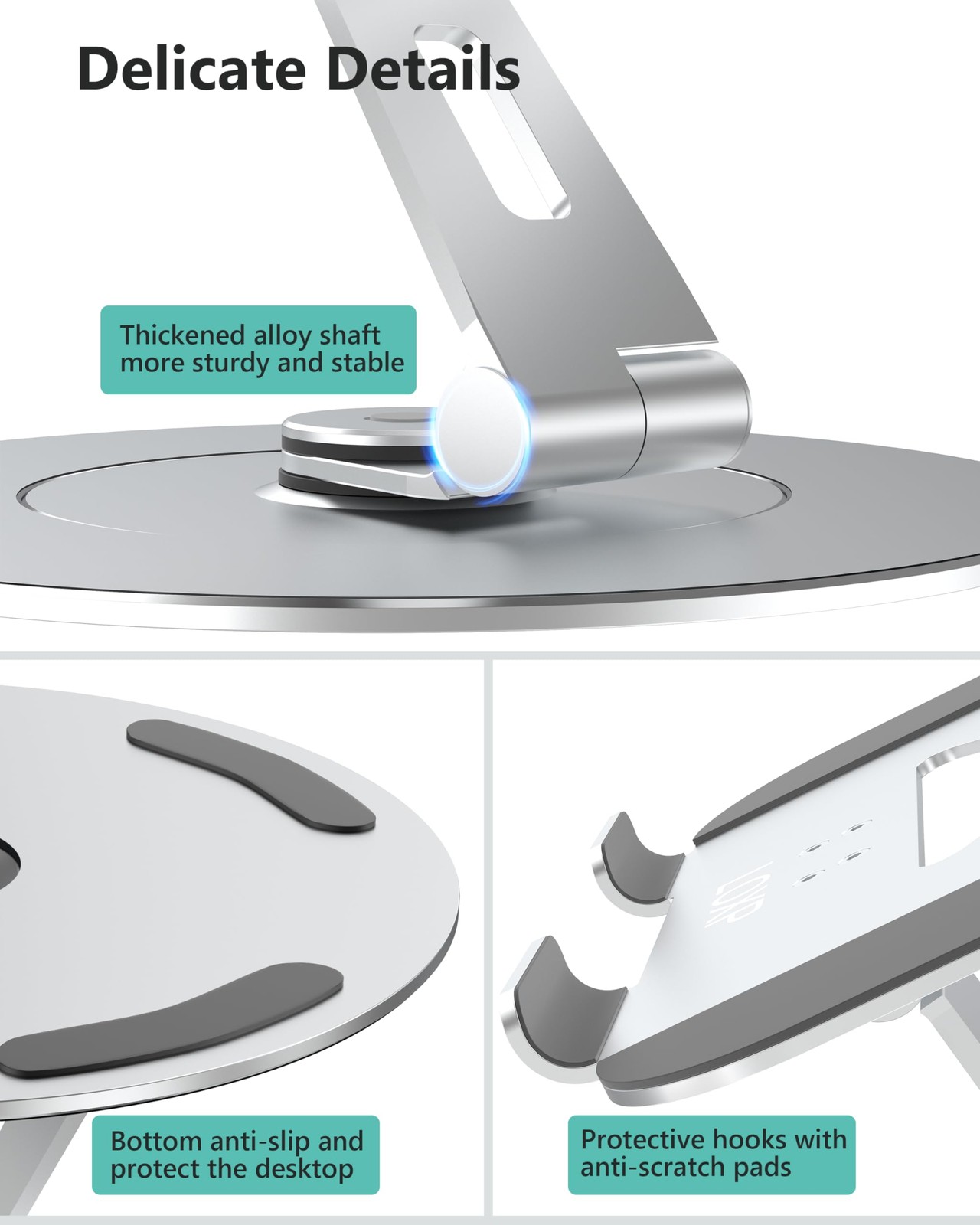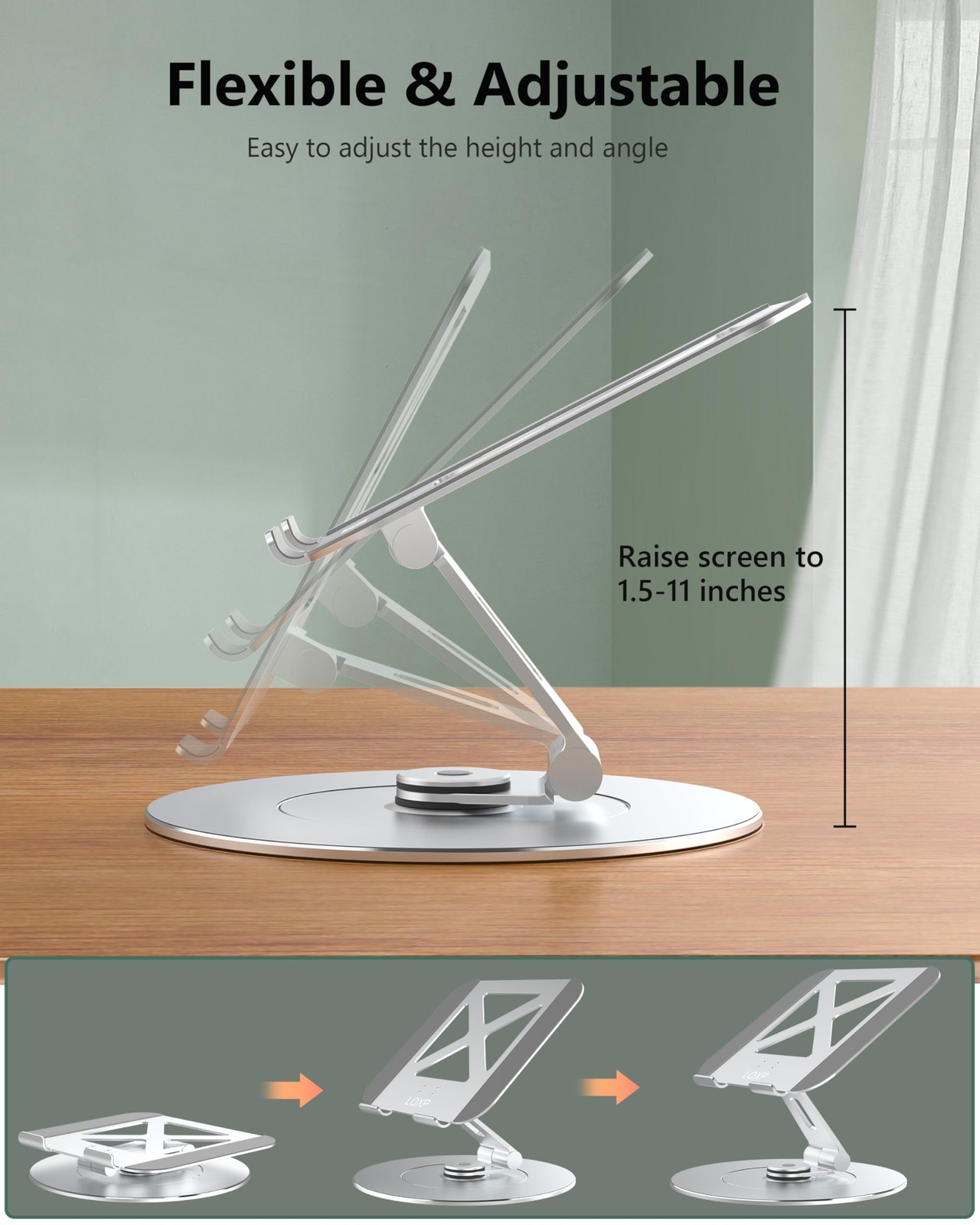Laptop Stand with Holder, Adjustable Laptop Stand with 360 Rotating Base, Alu...