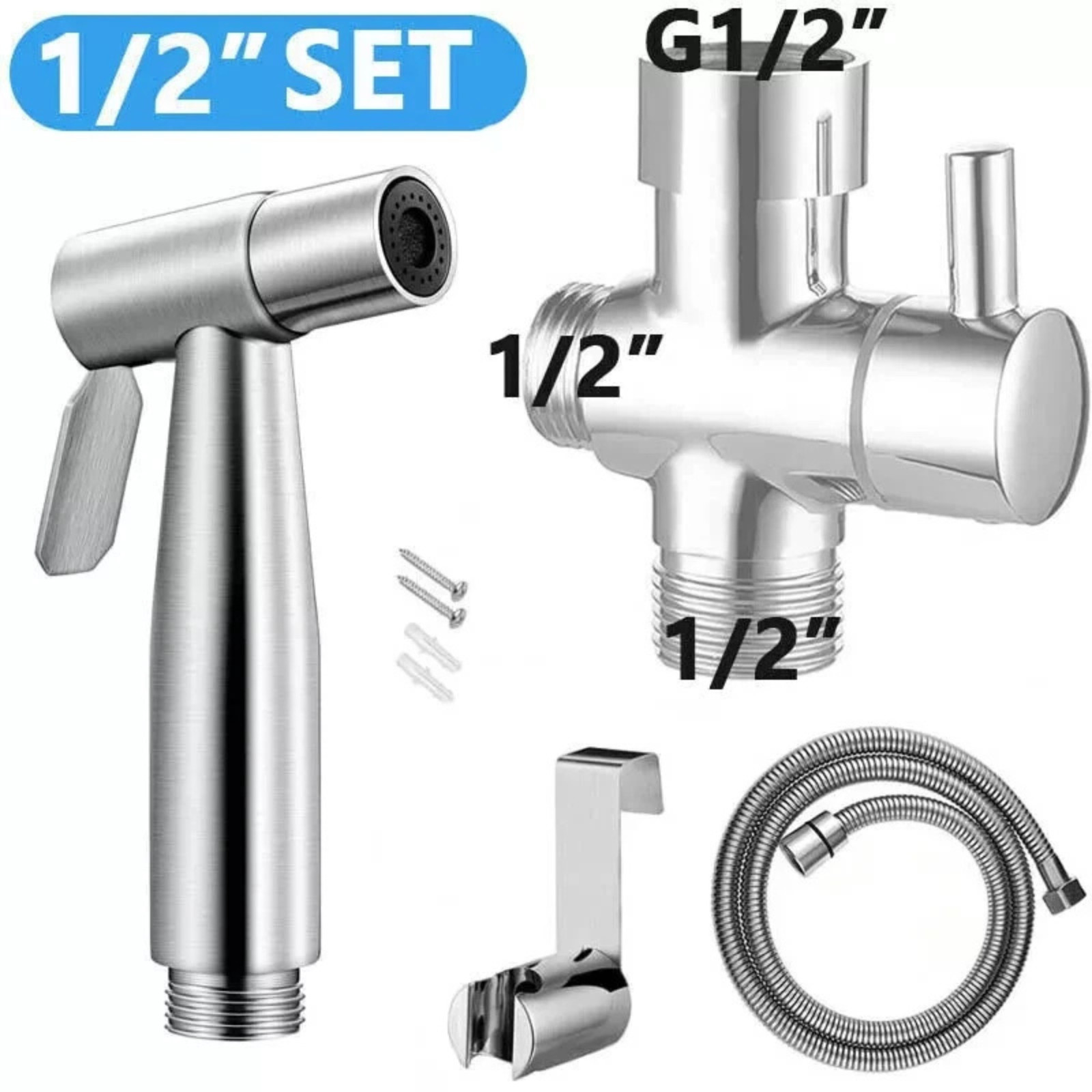 Items Included: T-ValveT, Bidet Sprayer, 5FT Hose Sprayer, Sprayer Holder, Wall Mount Hardware, Teflon Tape