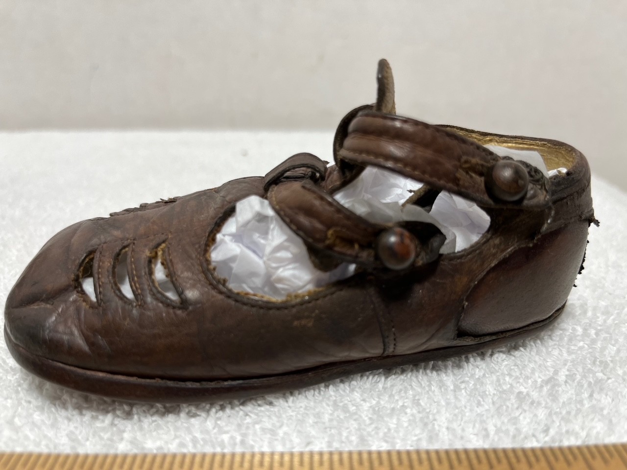 Brown Leather Antique BABY TODDLER BUTTON SHOES SANDALS w/ Leather Soles VTG